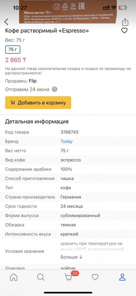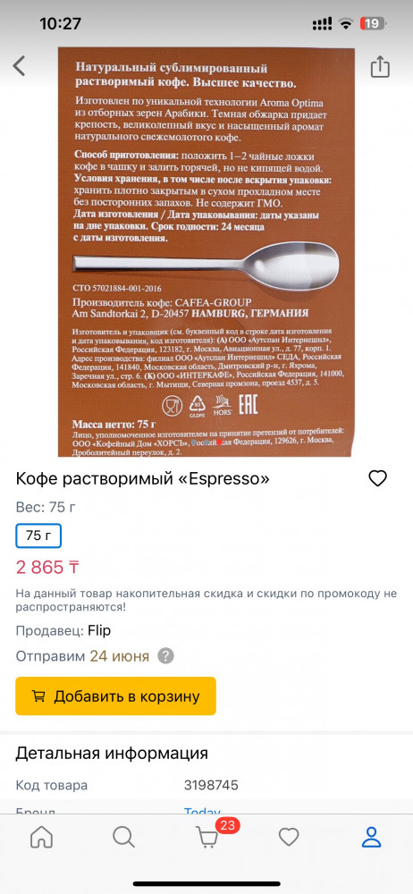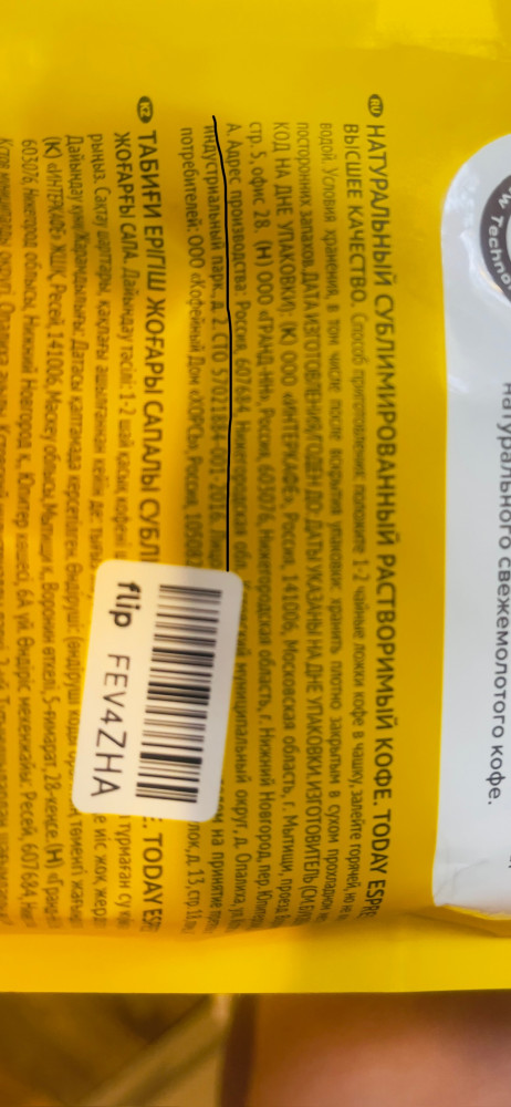 Ожидание и реальность . Производитель в карточке товара Германия , изготовитель росия 🤦🏻♀️ На упаковке только рос. Про Германию ни слова Так и пишите , что работают по франшизе , договору , разрешению или что там еще может быть . Все бы ничего , но вкус не очень . Значит прикрывают себя брендом . Брала как-то у офиц представителя today, кофе вкусный был . Этот нет