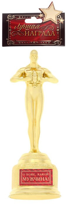 Статуэтка «О Боже, какой мужчина»В данный момент этот товар отсутствует в продаже. Возможно, у нас найдется аналогичный или похожий товар здесь. Устройте персональную церемонию вручения «Оскара»! Сделайте приятное родным и близким — скажите, как они дороги вам, выразите свою любовь, благодарность и восхищение. А с таким сувениром этот момент запомнится на долгие годы. Золотистая фигура «Оскар» с лавровым венком в руках дополнена пластиковой подставкой. На постаменте есть яркий голографический шильд со званием получателя награды. Изделие упаковано в украшенный золотым тиснением прозрачный пакет с клапаном. Дарите родным и близким яркие моменты! |