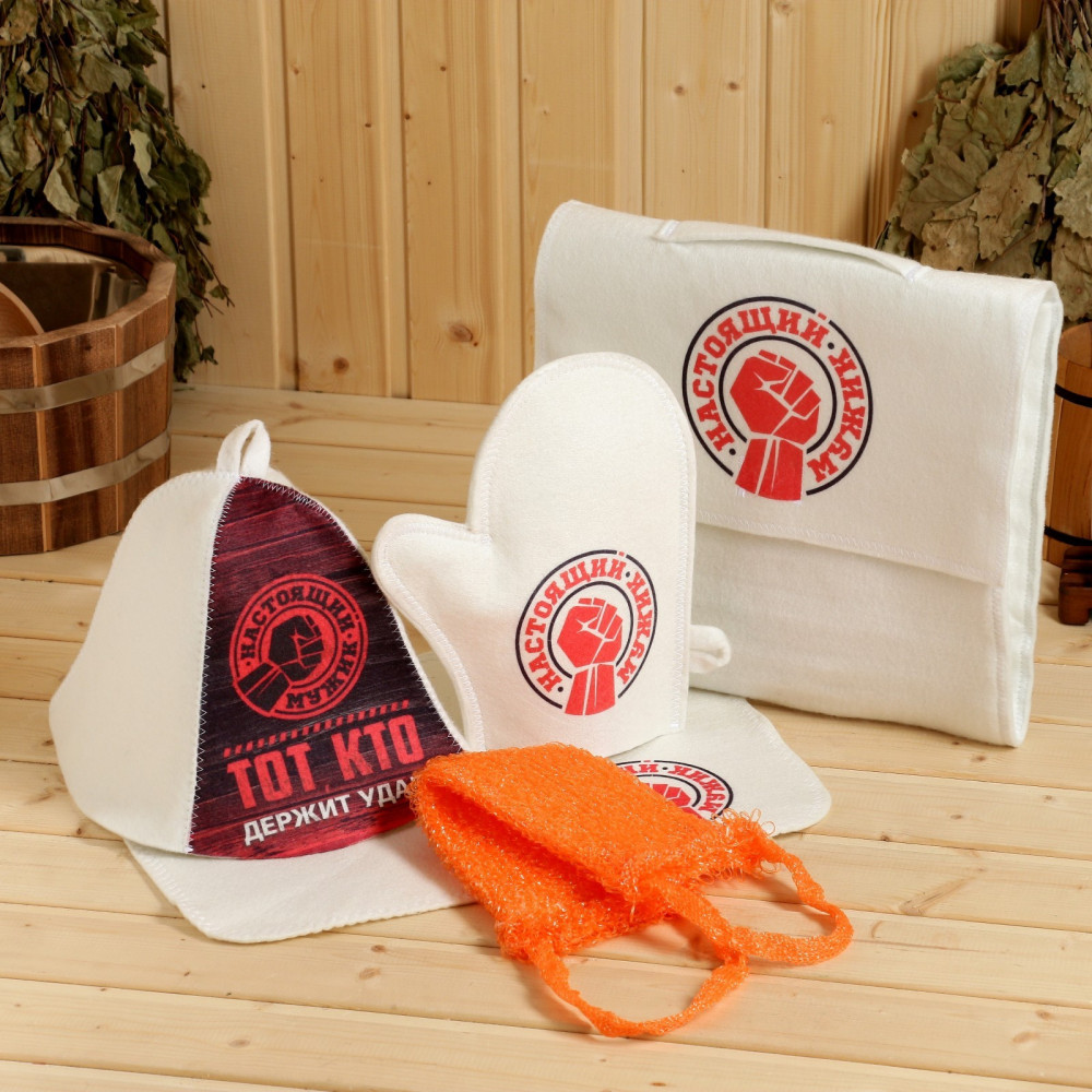 Для комфортного отдыха в парной возьмите с собой набор банных принадлежностей. Предметы из этого комплекта предохраняют тело от перегрева и являются средствами индивидуального пользования. Банная шапка защитит голову от перегрева, волосы от ломкости, а рукавица — от случайных ожогов. Коврик из войлока впитывают влагу и сохраняют сухость, что обеспечивает комфорт во время посещения парной.