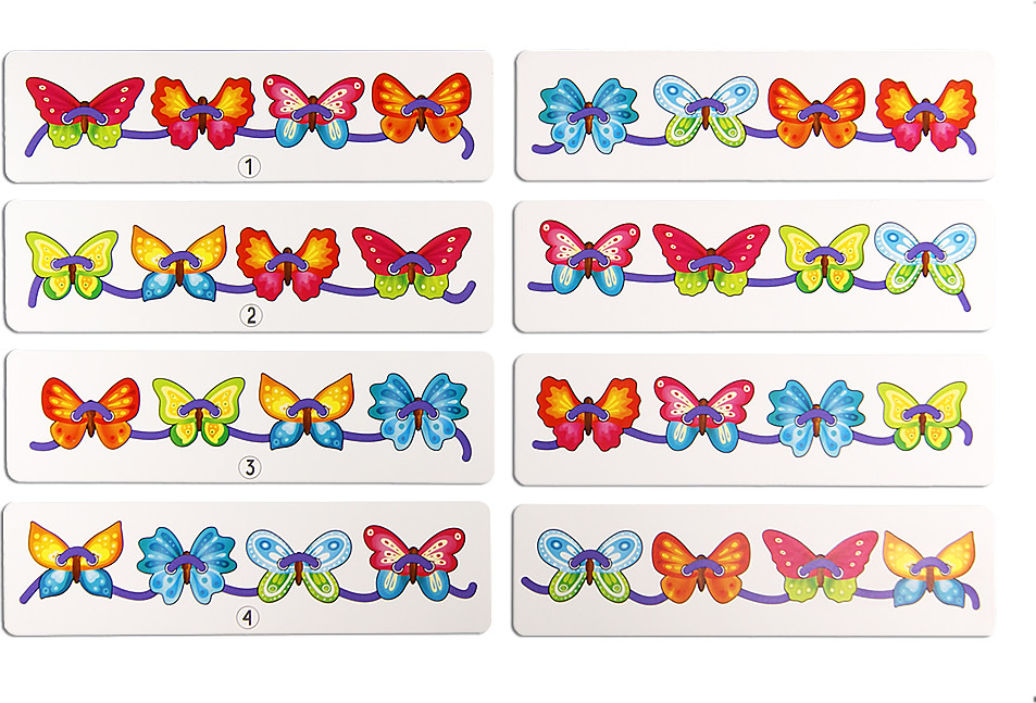 • игра «Исправь ошибку». Выберите одну из карточек и соответствующие элементы вкладыша. Выложите последовательность из элементов вкладыша, заведомо допустив ошибку. Попросите ребенка найти и исправить ошибки, ориентируясь на карточку-образец;