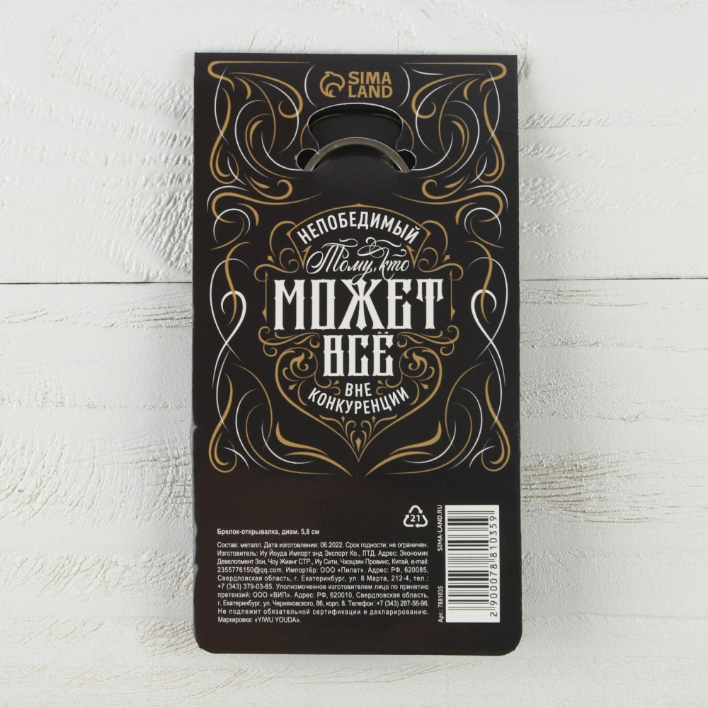 Micio Брелок-открывашка «Настоящий мужик»В данный момент этот товар отсутствует в продаже. Возможно, у нас найдется аналогичный или похожий товар здесь. Серия: 23 февраля Самый нужны аксессуар, который должен быть всегда с вами! Металлический брелок-открывашка для бутылок, с прикольным уникальным дизайном. Такая открывашка для пива и других напитков будет всегда с вами и точно пригодиться в непредвиденных ситуациях. Открывашка сделана из качественной нержавеющей стали, благодаря этому прослужит вам много лет, а ее яркий дизайн будет привлекать на себя внимание. Брелок — открывалка это отличный подарок на любое событие или яркое дополнение к подарку. |