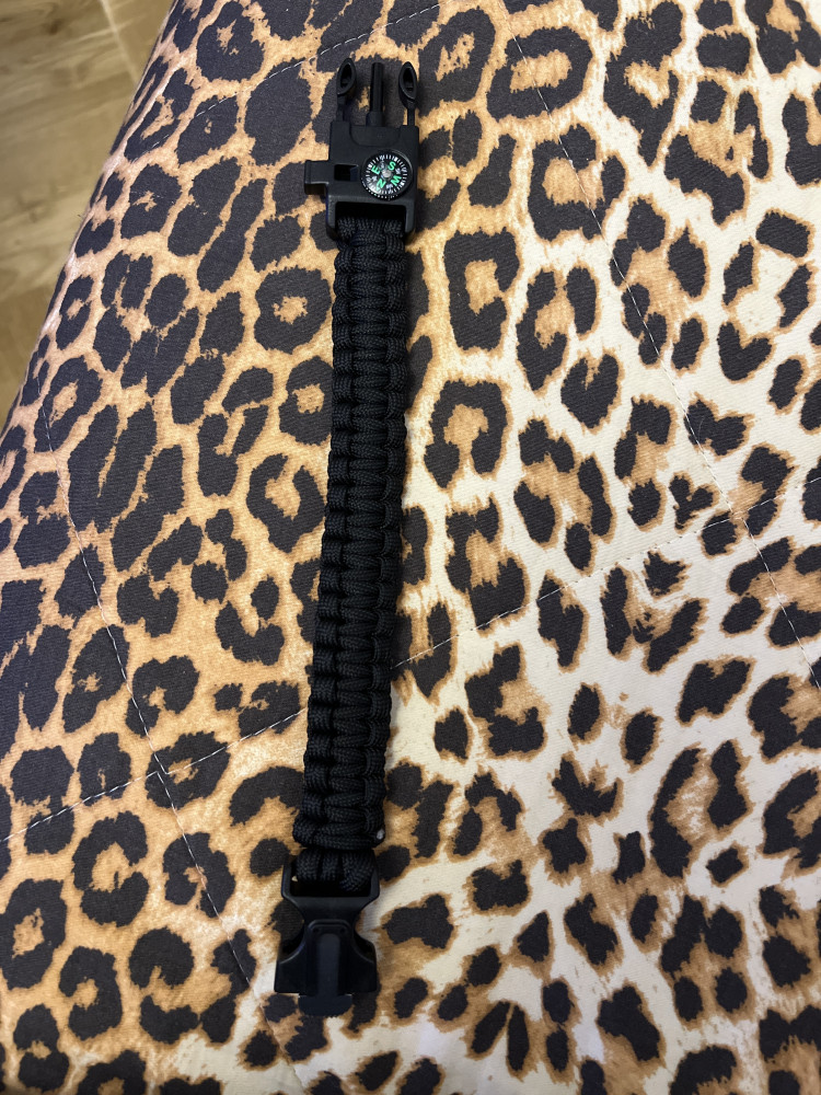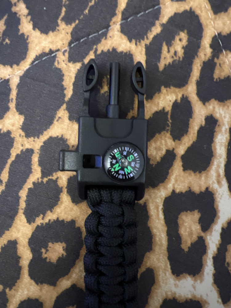 Отличная вещь для Алматы😜 Свисток - ради него заказывала Компас работать Резак маленький но есть Жгут (пока не знаю как им пользоваться, видимо нужно его распустить и получится длинный) Огниво пока не нашла Хоть что то на всякий случай
