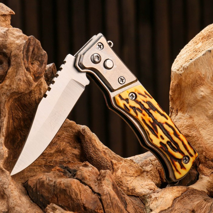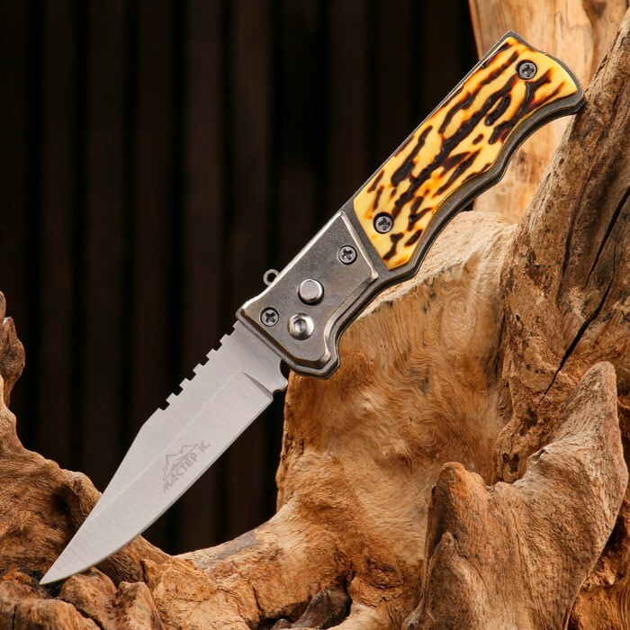 Нож складной автоматический предназначен для использования в походе, на пикнике, в быту. Лезвие открывается автоматически при нажатии на кнопку. Для блокировки лезвия включите фиксирующий механизм с помощью рычажка. Беречь от детей!