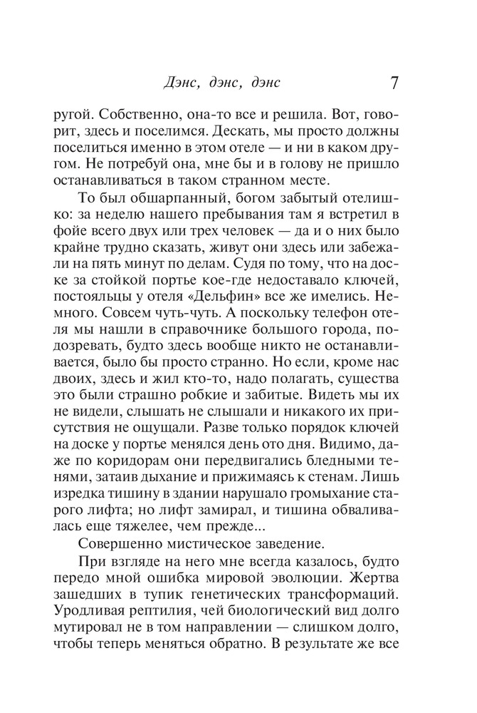Bменно эта книга мне не очень понравилась, муть какая-то, реальность - ирреальность. Кажется это трилогия, обязательно нужно прочесть сначала "Охоту на овец", а то не очень будет понятно. Язык сложный, предложения длинные, наслоенные.