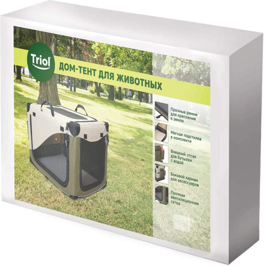 Triol Дом-тент для животныхВ данный момент этот товар отсутствует в продаже. Возможно, у нас найдется аналогичный или похожий товар здесь. Складной дом-тент для животных — оптимальное решение для отдыха за городом, работы на выставках и для комфортной транспортировки питомца в автомобиле. Тент прямоугольной формы оснащен большим вентиляционным окном и просторным входом, которые легко закрываются на молнию. В комплекте изделия также есть съемная подстилка, очень удобная для отдыха животного. Тентовое покрытие изготовлено из прочного синтетического экоматериала, а сама конструкция легко складывается в удобную сумку, не занимая много места. |