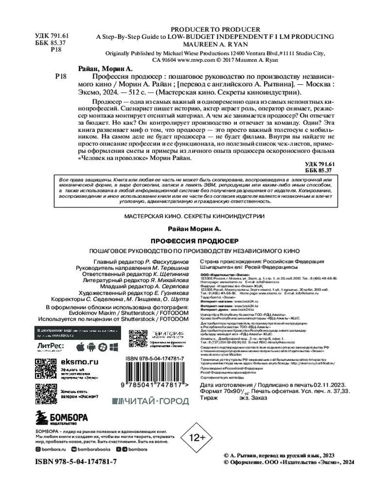 | Профессия продюсер. Пошаговое руководство по производству независимого кино Морин А. Райан +337 (бонусов)