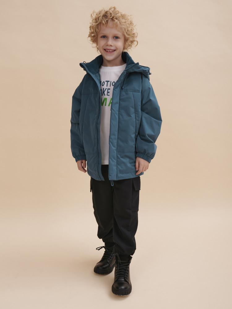 Демисезонная модель прямого силуэта, увеличенного объема, на подкладе из флиса. Куртка детская с температурным режимом +5 °C на весну и осень. Верхняя одежда для детей отлично защищает от ветра и осадков, позволяя активно двигаться, заниматься спортом и весело играть как в городе, так и на природе. Куртка на мальчика представлена в размере возраста для садика и школы. Понравится малышам, школьникам, подросткам. Уютная и модная базовая вещь для сезона на каждый день.