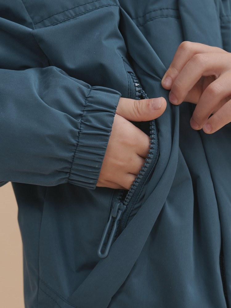 Мембранная ткань хорошо защищает нижние слои одежды от намокания. Структура мембранной ткани позволяет коже дышать — ребенок легко двигается и не переохлаждается. Изделие сохраняет первоначальный внешний вид даже при активной носке. Ткань верха бархатистая, очень приятная на ощупь, с peach-эффектом и водоотталкивающей пропиткой. Подклад из флиса не впитывает влагу, а отводит её от тела, ткань лёгкая и воздушная, поддерживает комфортную температуру и хорошо защищает от переохлаждения. Куртка не деформируется при стирке, сохраняет форму и красивый внешний вид. Водоотталкивающая пропитка или DWR (Durable Water Repellent) — «устойчивое водоотталкивающее покрытие» — защищает от промокания под дождем: материал не утяжеляется под воздействием влаги, позволяя свободно пропускать воздух.
