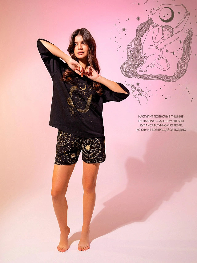 Я в полном восторге от этой пижамы. Не смотря на то, что не люблю чёрный цвет, удобный фасон, мягкость ткани и рисунок перевесили этот недостаток.)) Очень удобный комплект!