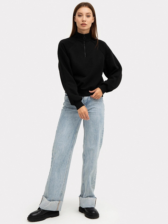 Прекрасный джемпер, красивый, нежно-голубой цвет, гладкая, плотная ткань, футер не лезет. Ношу вторую неделю, стирала несколько раз, всё отлично. На рост 170 см коротковат, но очень понравился и я его купила, о чем не жалею. Цена смешная для такой качественной вещи.