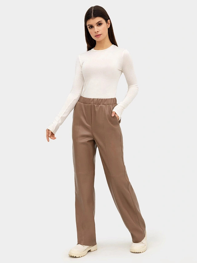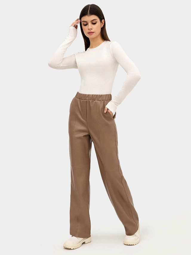 В передней части брюк выше колен имеется шов, где соединяются 4 полочки передней части штанин. Не все швы состыкованы и выполнены не совсем точно, а качество пошива не плохое. Но я всё равно оставила, так как понравились. Конечно же, брюки забрала себе моя дочь.