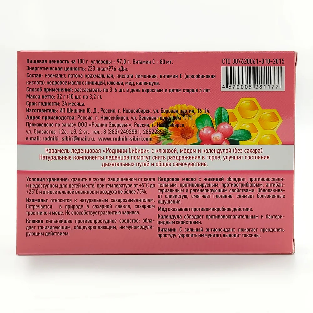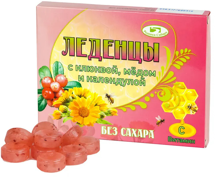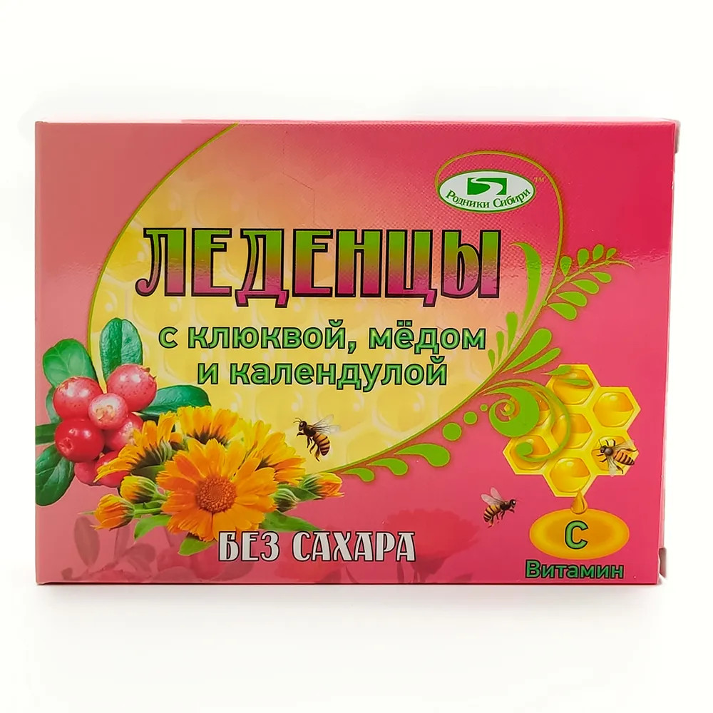 Родники Сибири Леденцы без сахара с клюквой, медом и календулой