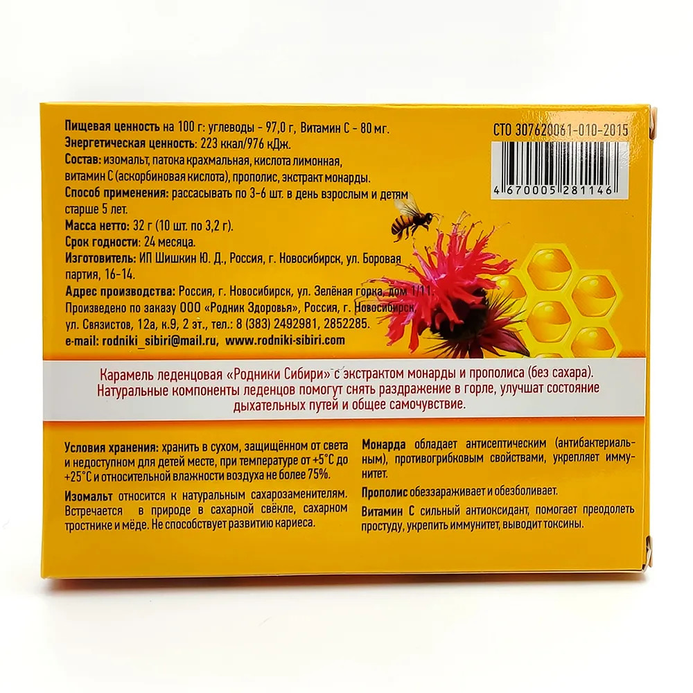 Родники Сибири Леденцы без сахара с экстрактом монарды и прополиса