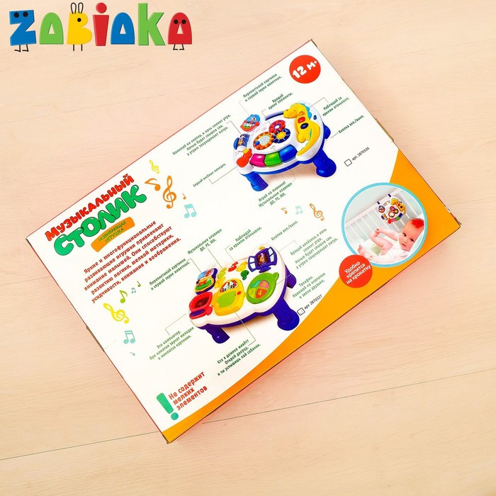 💳 Оплатить за товар можно при получении 🇰🇿 Есть бесплатная доставка по Казахстану от 1 дня 🎁 Копите бонусы с каждой покупки Серия: Моя первая музыкальная игрушка Развивающий столик-подвеска «Домик» разработан для малышей от 1 года. С ним кроха разовьёт мелкую моторику рук, логику, воображение, внимание и усидчивость. Игрушка безопасна для малышей, не содержит мелких деталей. Столик можно крепить на кроватку в качестве подвески. |
