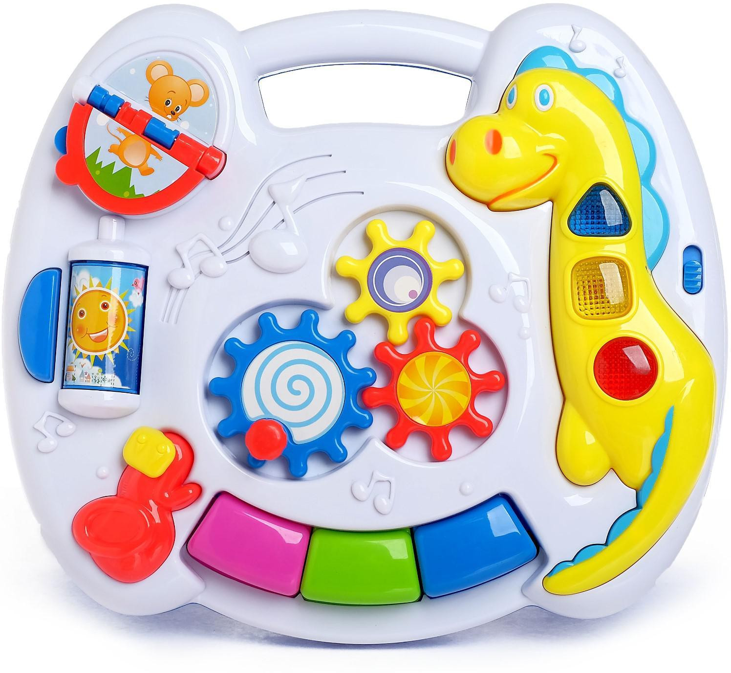 Zabiaka Столик-подвеска «Солнышко»В данный момент этот товар отсутствует в продаже. Возможно, у нас найдется аналогичный или похожий товар здесь. Серия: Моя первая музыкальная игрушка Яркий музыкальный столик вмещает в себя много познавательных элементов. Красочный модуль с объёмными фигурками и яркими деталями с первых секунд завладеет вниманием крохи: малыш с удовольствием будет вращать, нажимать и двигать детали. В процессе игры ребёнок развивает аудиальное и визуальное восприятие, мелкую моторику и тактильные ощущения. |