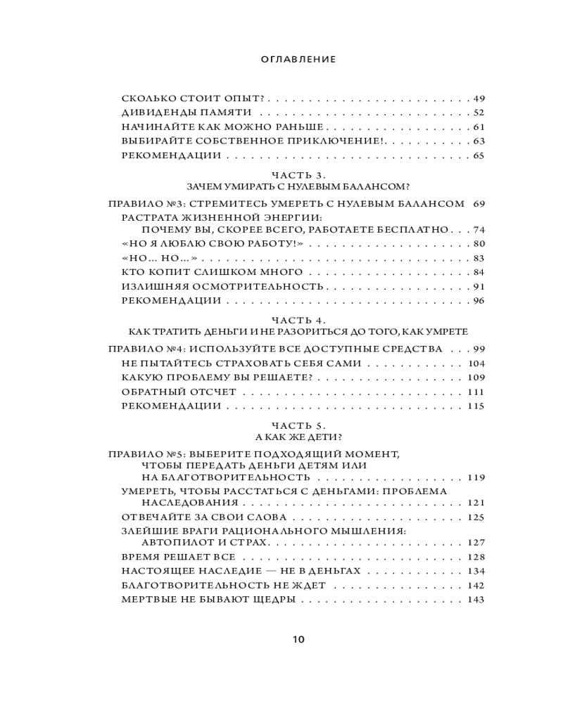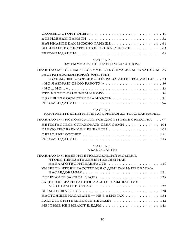 Отличная книга, подходит всем, кто живет так называемой "отложенной жизнью". После прочтения возникает "отрезвляющий эффект". Читается очень легко и быстро, мне хватило 2 дней. Рекомендую к прочтению людям, кто думает, что нужно заработать как можно больше, а ближе к пенсии можно будет пользоваться всеми накопленными благами.