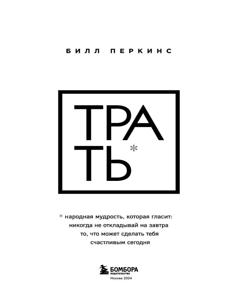Трать. Народная мудрость, которая гласит: не откладывай никогда на завтра то, что может сделать тебя счастливым сегодня-30% +42 легко читается отрезвляющий эффект подходит всем