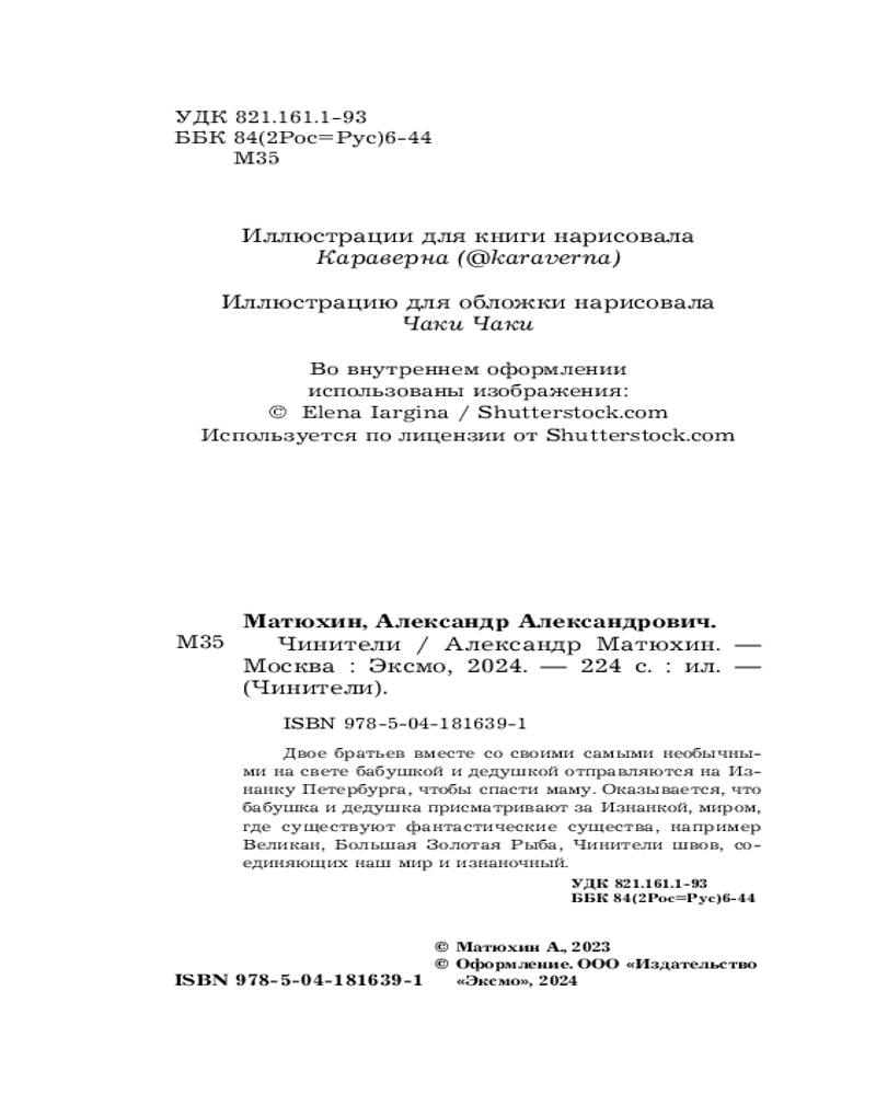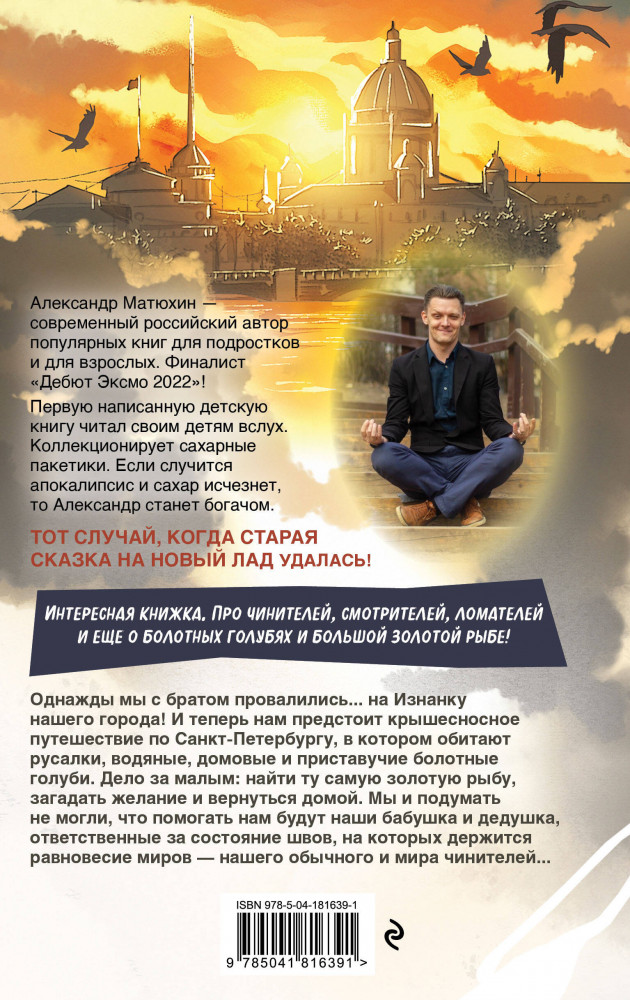 💳 Оплатить за товар можно при получении 🇰🇿 Есть бесплатная доставка по Казахстану от 1 дня 🎁 Копите бонусы с каждой покупки Серия: Детск. Чинители Классная фэнтези-история для детей и подростков! Внутри иллюстрации, как в комиксах, с главными фэнтези-героями. Подойдет для обсуждения с друзьями и всей семьей. Двое братьев вместе со своими самыми необычными на свете бабушкой и дедушкой отправляются на Изнанку Петербурга, чтобы спасти маму. Оказывается, что бабушка и дедушки присматривают за Изнанкой, миром, где существуют фантастические существа, например, Великан, Большая Золотая Рыба, Чинители швов, соединяющих наш мир и изнаночный. И... новый взгляд на сказку о Золотой Рыбке! |