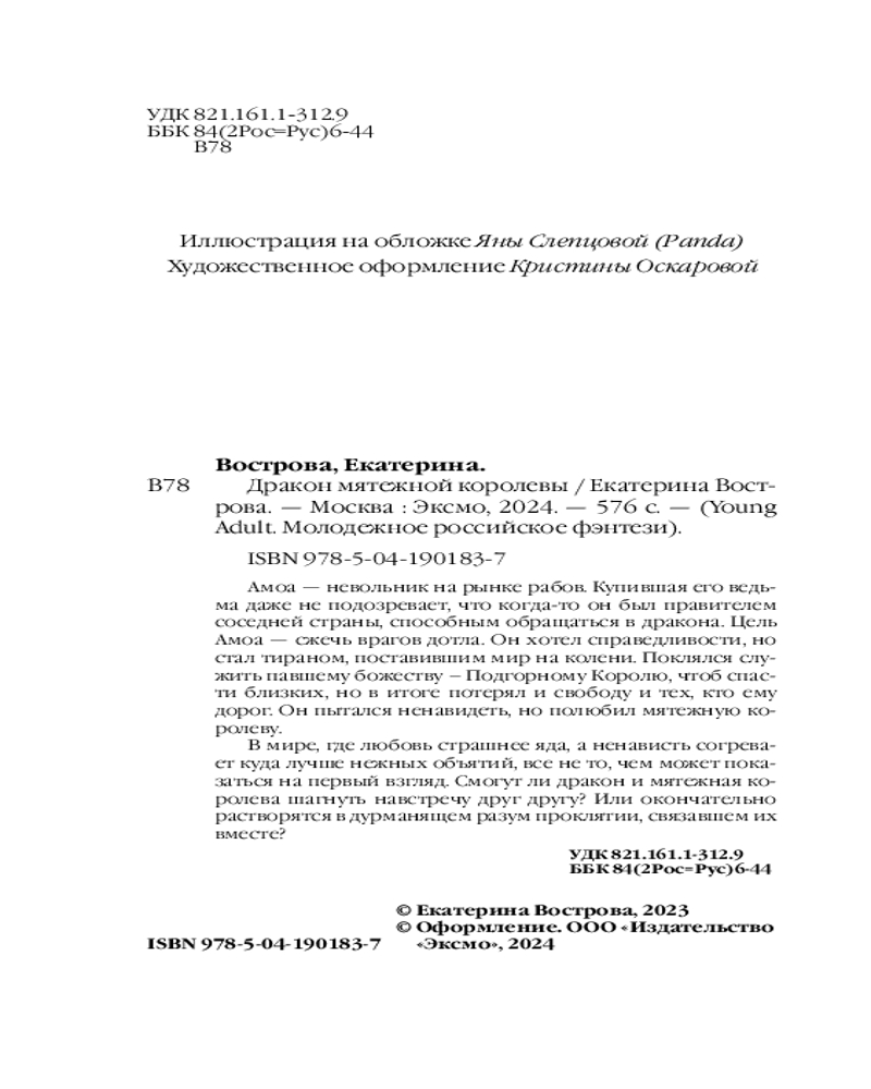 💳 Оплатить за товар можно при получении 🇰🇿 Есть бесплатная доставка по Казахстану от 1 дня 🎁 Копите бонусы с каждой покупки Серия: Young Adult. Молодежное российское фэнтези Яркая романтическая фэнтези история от Екатерины Востровой! Более 1,2 миллиона прочтений на Литнет! Дилогия в одном томе, вам не придется ждать продолжения, чтобы узнать финал истории! |