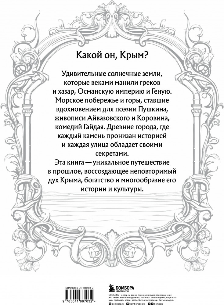 💳 Оплатить за товар можно при получении 🇰🇿 Есть бесплатная доставка по Казахстану от 1 дня 🎁 Копите бонусы с каждой покупки Серия: Подарочные издания. Россия культурная Столетиями Крым привлекал не только путешественников, но и писателей, поэтов, художников, а в ХХ веке и кинематографистов. Эти удивительные земли полны не только историй и легенд, принесенных разными народами, от греков до генуэзцев, но и красивейших памятников культуры и искусства. Знакомые каждому комедии Гайдая, снятые в Евпатории, бессмертные строки Пушкина, удивительные полотна Айвазовского, Коровина и Шишкина... Все грани истории и культуры Крыма ждут вас на этих страницах. |