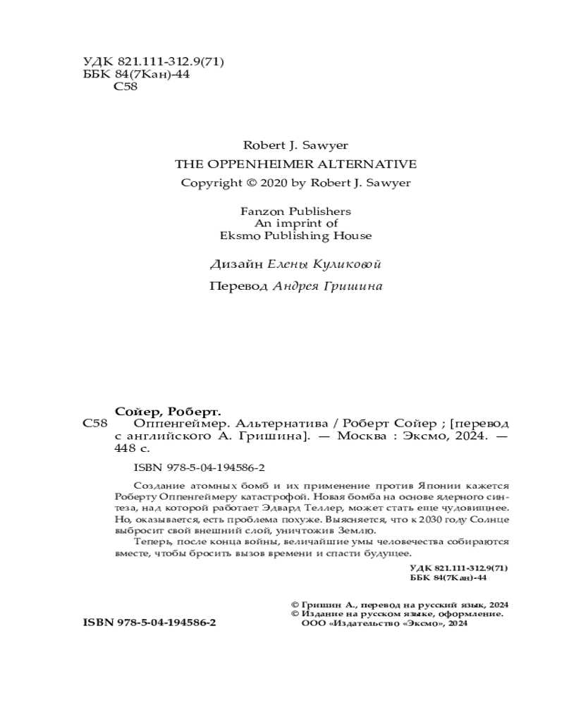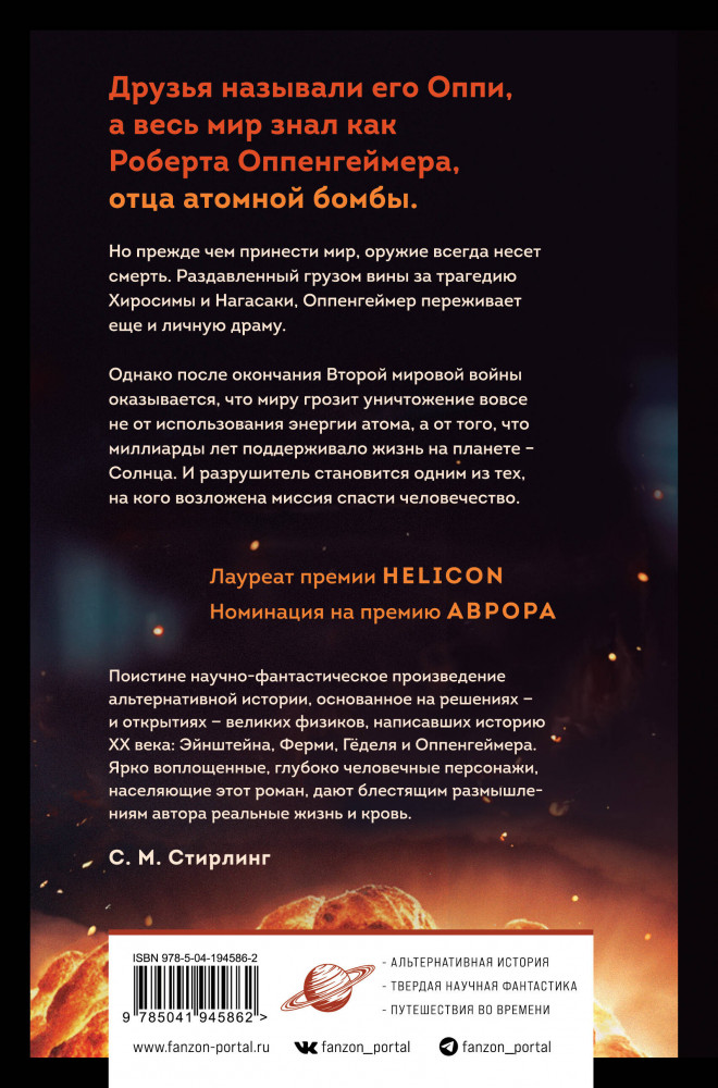 💳 Оплатить за товар можно при получении 🇰🇿 Есть бесплатная доставка по Казахстану от 1 дня 🎁 Копите бонусы с каждой покупки Серия: Fanzon. Роберт Сойер. Образы будущего Новая книга Роберта Сойера, лауреата множества премий, таких как «Хьюго», «Небьюла» и «Аврора». Пока Роберт Оппенгеймер и его команда по Манхэттенскому проекту бьются над созданием атомной бомбы, Эдвард Теллер мечтает о еще более разрушительном оружии, основанном на ядерном синтезе — механизме, который питает Солнце. Исследования Теллера приводят к ужасающему открытию: к 2030 году Солнце выбросит свой внешний слой, уничтожив Землю. После бомбардировки Японии и конца войны команда Оппенгеймера, а также Альберт Эйнштейн и Вернер фон Браун объединяются — величайшие научные гении прошлого века начинают войну со временем, чтобы спасти наше будущее. |