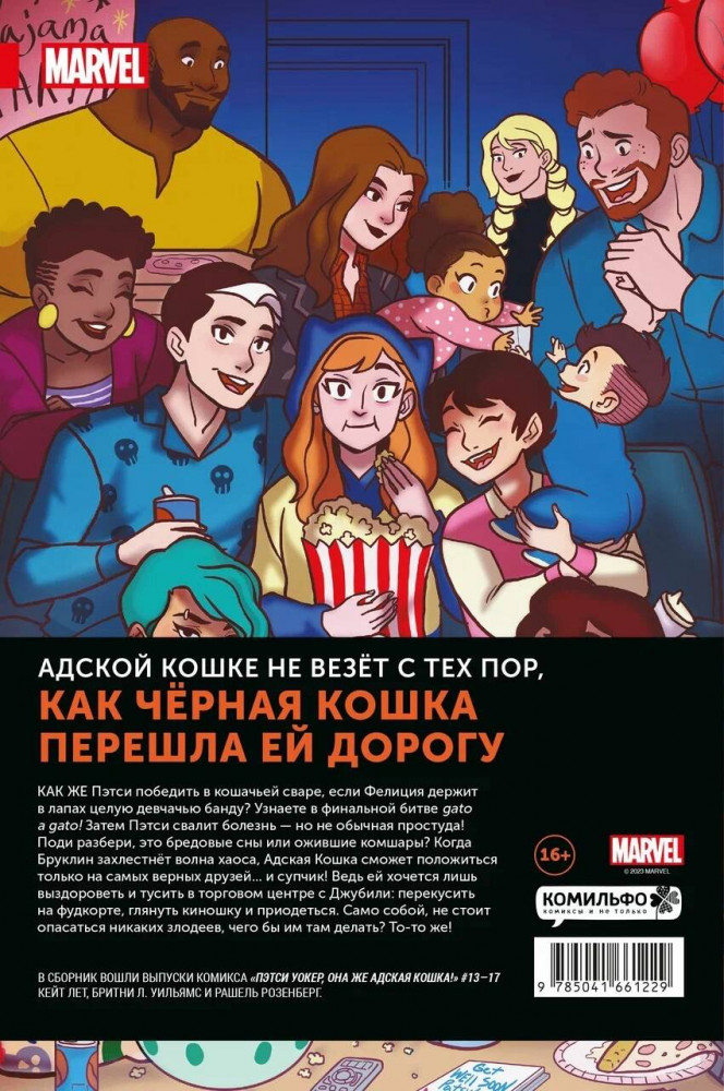 💳 Оплатить за товар можно при получении 🇰🇿 Есть бесплатная доставка по Казахстану от 1 дня 🎁 Копите бонусы с каждой покупки Серия: Девушки Marvel (обложка) Как же Пэтси победить в кошачьей сваре, если Фелиция держит в лапах целую девчачью банду? Узнаете в финальной битве gato a gato! Затем Пэтси свалит болезнь — но не обычная простуда! Поди разбери, это бредовые сны или ожившие кошмары? Когда Бруклин захлестнёт волна хаоса, Адская Кошка сможет положиться только на самых верных друзей... и супчик! Ведь ей хочется лишь выздороветь и тусить в торговом центре с Джубили: перекусить на фудкорте, глянуть киношку и приодеться. Само собой, не стоит опасаться никаких злодеев, чего бы им там делать? То-то же! В сборник вошли выпуски комикса «Пэтси Уокер, она же Адская Кошка!» #13–17 Кейт Лет, Бритни Л. Уильямс и Рашель Розенберг. |