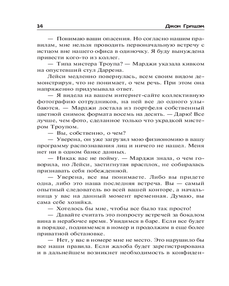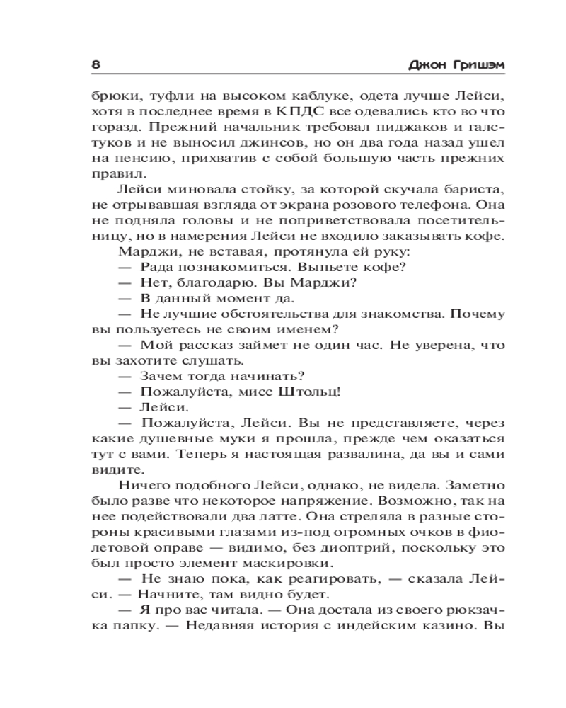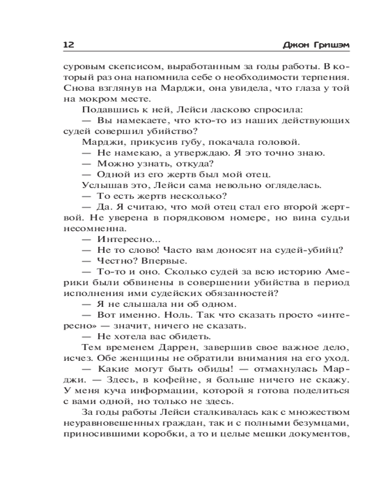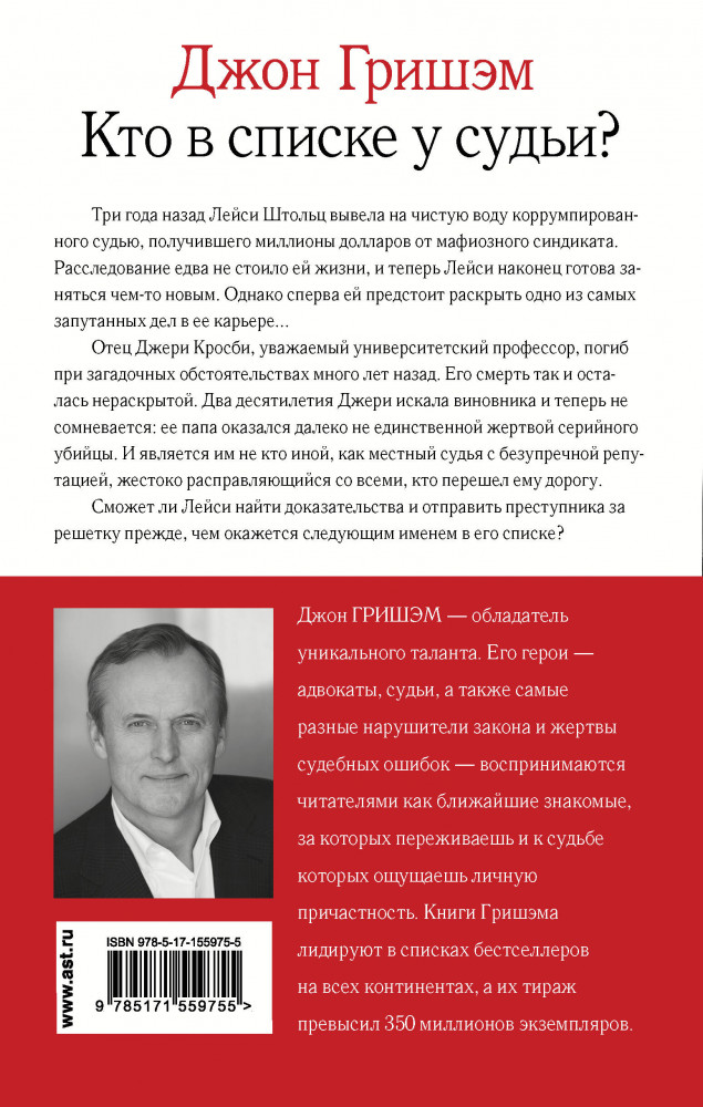 💳 Оплатить за товар можно при получении 🇰🇿 Есть бесплатная доставка по Казахстану от 1 дня 🎁 Копите бонусы с каждой покупки Серия: Гришэм: лучшее Три года назад Лейси Штольц вывела на чистую воду коррумпированного судью, получившего миллионы долларов от мафиозного синдиката. Расследование едва не стоило ей жизни, и теперь Лейси, наконец, готова к переменам. Однако сперва ей предстоит раскрыть одно из самых запутанных дел в ее карьере... Отец Джери Кросби, уважаемый университетский профессор, погиб при загадочных обстоятельствах много лет назад. Его смерть так и осталась нераскрытой. Два десятилетия Джери искала виновника и теперь не сомневается: ее папа оказался далеко не единственной жертвой серийного убийцы. И является им не кто иной, как местный судья с безупречной репутацией, жестоко расправляющийся со всеми, кто перешел ему дорогу. Сможет ли Лейси найти доказательства и отправить преступника за решетку прежде, чем окажется следующим именем в его списке? |