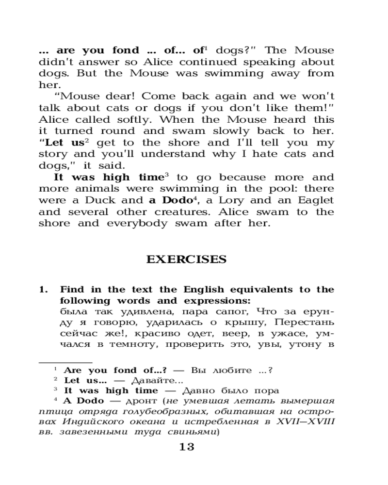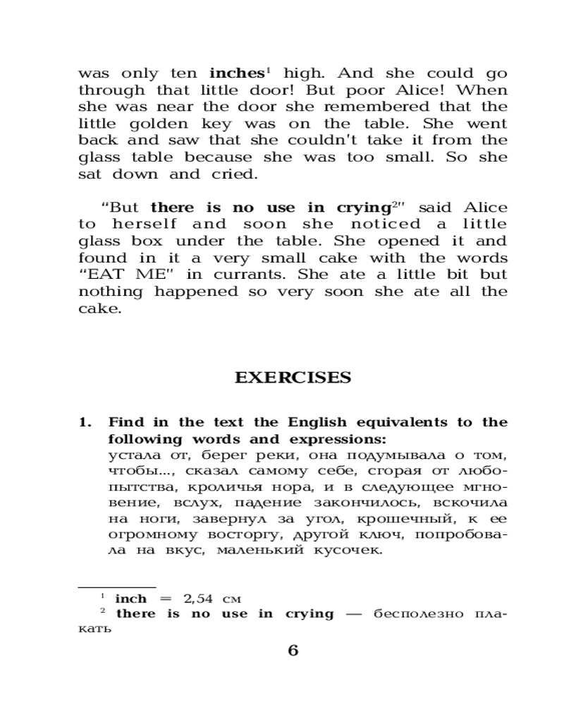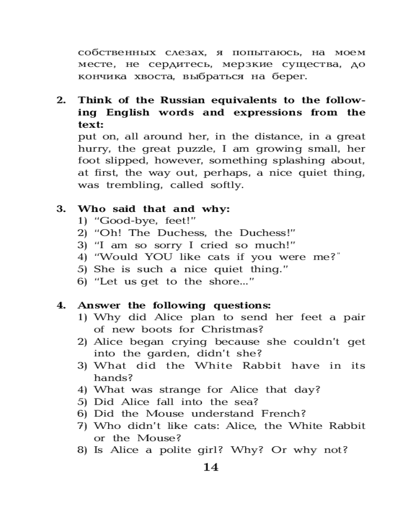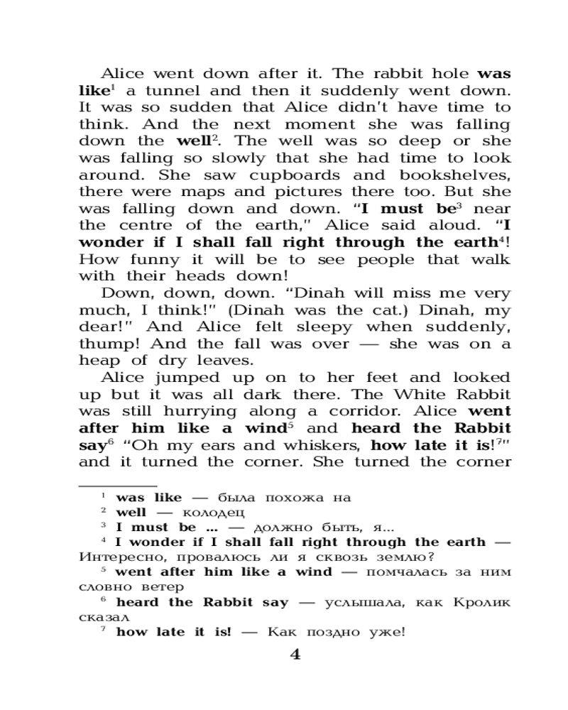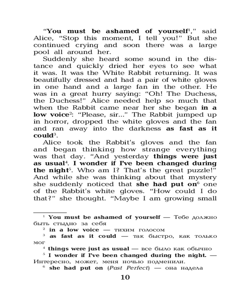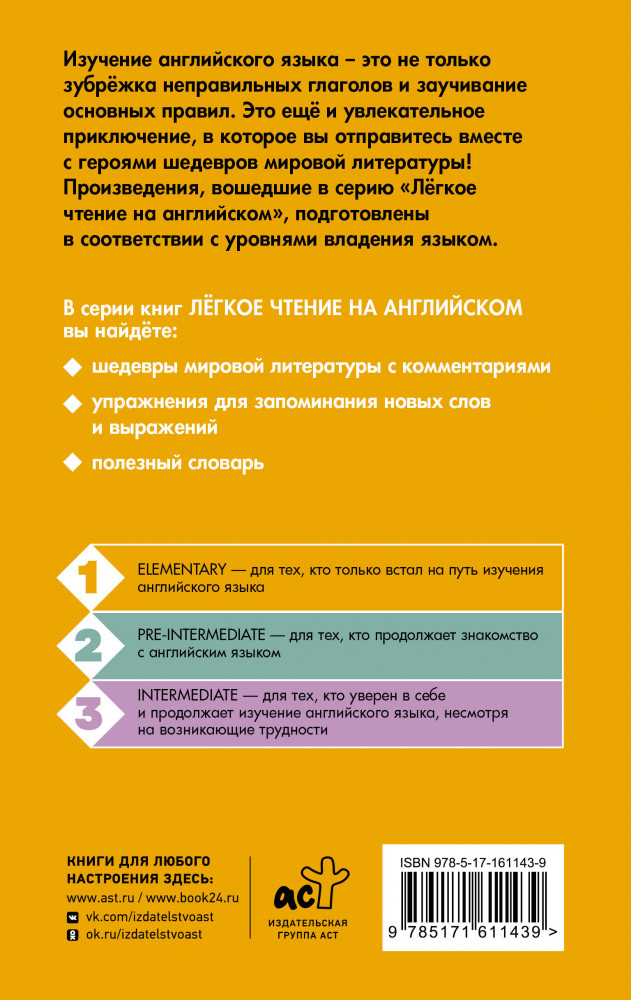 «Алиса в Стране чудес» — сказка о девочке по имени Алиса, которая попадает в воображаемый мир и встречает множество странных существ. Книга считается одним из лучших образцов литературы в жанре абсурда. Она наполнена философскими шутками и аллюзиями. Сказка представлена в адаптированном и сокращенном варианте. Подходит для тех, кто только начинает изучать английский язык (Уровень 1 — Elementary). Книга содержит комментарии, удобный и полезный словарь, интересные упражнения для запоминания новых слов и выражений. |