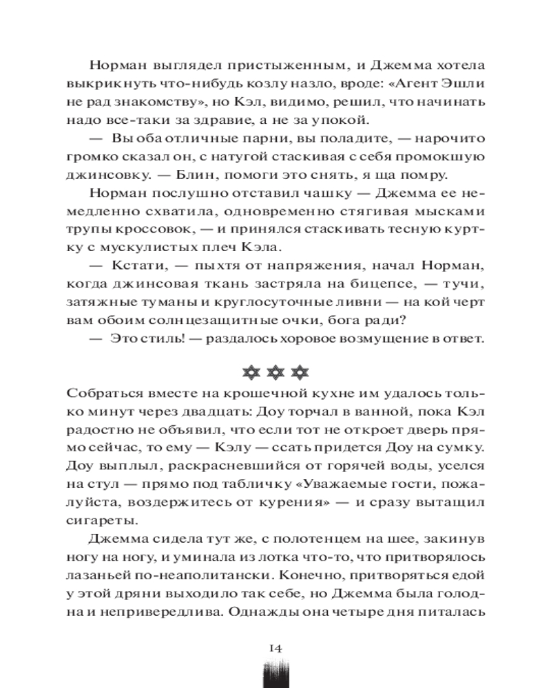 Минусов не отыскала, поэтому сразу к плюсам. «Вкусный» текст, харизматичные персонажи, ужасающая атмосфера (в хорошем смысле этого слова) и юмор, который идеально вписывается в книгу, делая её ещё более целостной. В романе шестьсот страниц, шестнадцать глав и вот же удивление — ни одной секунды я не скучала. Переворачивала страницу за страницей и не могла остановиться, настолько повествование затягивало. Мне одновременно хотелось, чтобы это не заканчивалось и, чтобы закончилось, ведь вопросов скопилось немерено. Моя единственная ошибка — стоило дождаться, пока выйдет вся серия и со спокойным сердцем «проглотить» всё за один присест, но книга настойчиво уговаривала меня не оставлять её на книжной полке не прочитанной и я сдалась. Ну, и конечно атмосфера. Та самая, где призраки, вампиры и другая нечисть ходит по земле и иногда даже не скрывается. Не всем удаётся правильно её воссоздать, но у писательницы вышло и моментами, когда герои возвращались в лес, мне становилось не по себе. Вместе с героями я ожидала, как начнёт происходить очередная непонятная х*рня, способная напугать до усрачки🙈