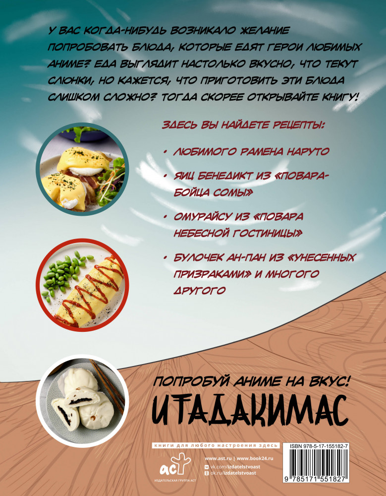 💳 Оплатить за товар можно при получении 🇰🇿 Есть бесплатная доставка по Казахстану от 1 дня 🎁 Копите бонусы с каждой покупки Серия: ХЗ: Хлеба и зрелищ У вас когда-нибудь возникало желание попробовать блюда, которые едят герои любимых аниме? Еда выглядит настолько вкусно, что текут слюнки, но кажется, что приготовить эти блюда слишком сложно? Тогда скорее открывайте книгу! |