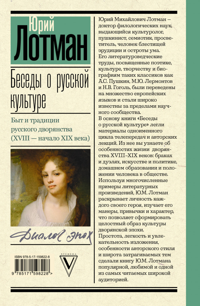 💳 Оплатить за товар можно при получении 🇰🇿 Есть бесплатная доставка по Казахстану от 1 дня 🎁 Копите бонусы с каждой покупки Серия: Диалог эпох Юрий Михайлович Лотман — доктор филологических наук, выдающийся культуролог, пушкинист, семиотик, просветитель, человек блестящей эрудиции и остроты ума. Его литературоведческие труды, посвященные поэтике, культуре, творчеству и биографиям таких классиков как А.С. Пушкин, М.Ю. Лермонтов и Н.В. Гоголь, были переведены на множество европейских языков и стали широко известны за пределами научного сообщества. |