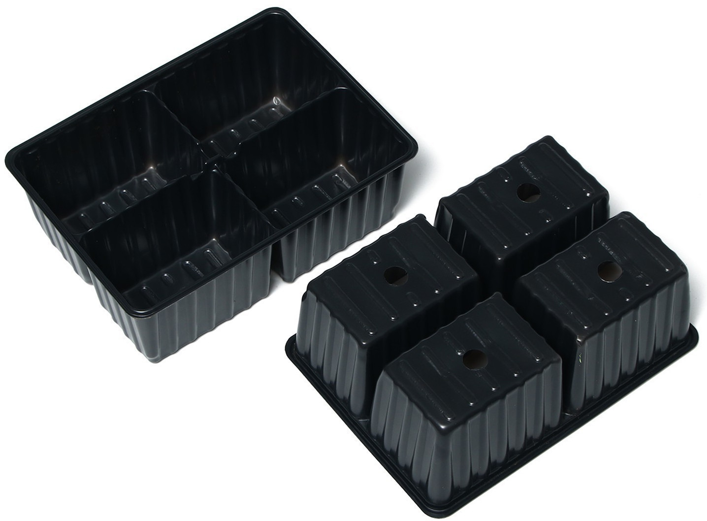 В каждой ячейке корневая система развивается свободно. Поддон регулирует увлажнённость почвы. При недостатке полива добавьте в него воду для впитывания. При избыточном орошении сливайте жидкость из поддона. Пластиковая кассета легко моется, сохраняет форму на солнце, не гниёт.