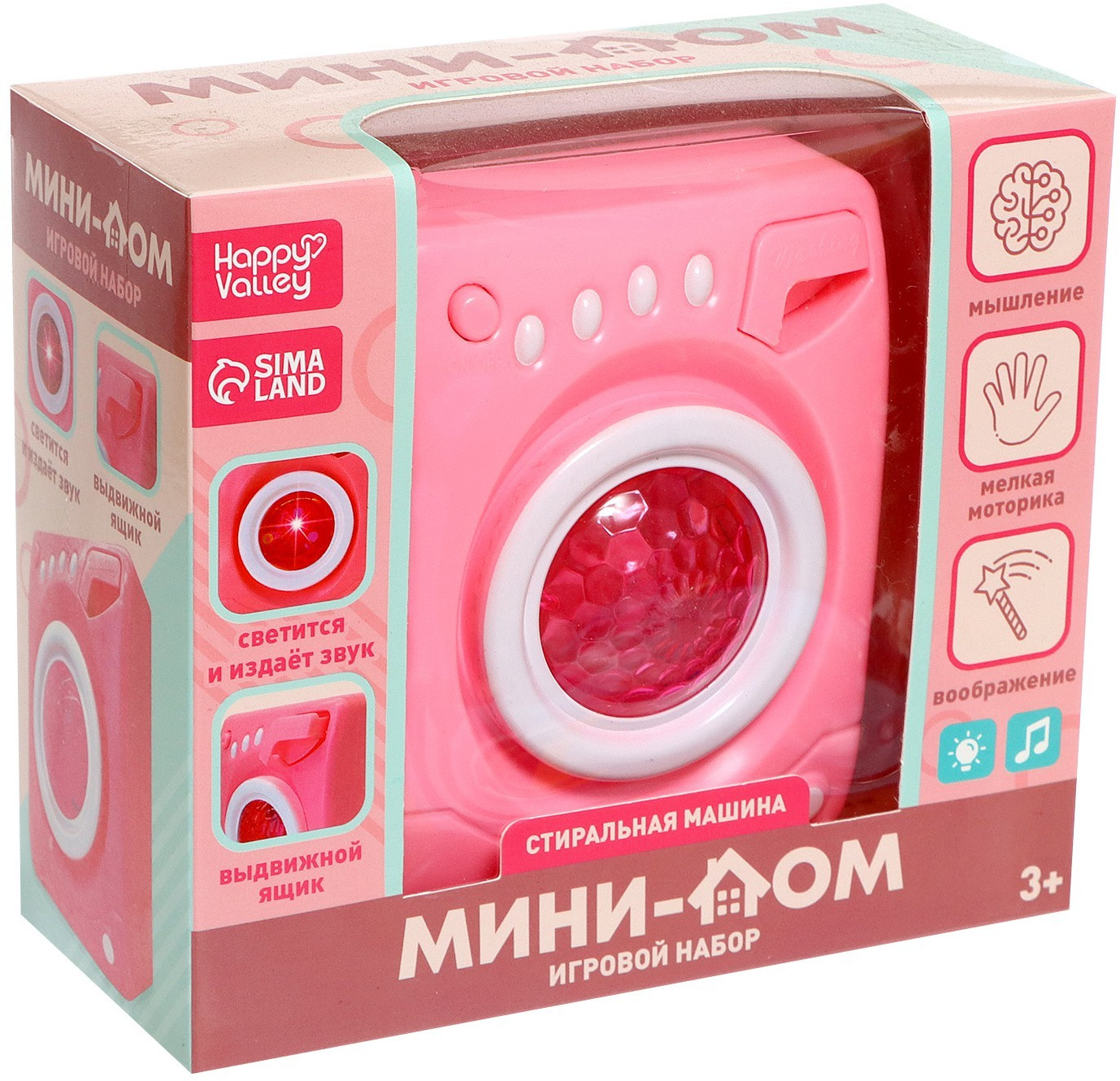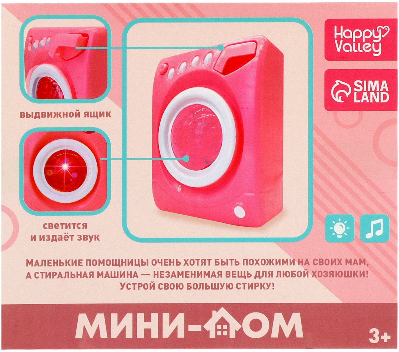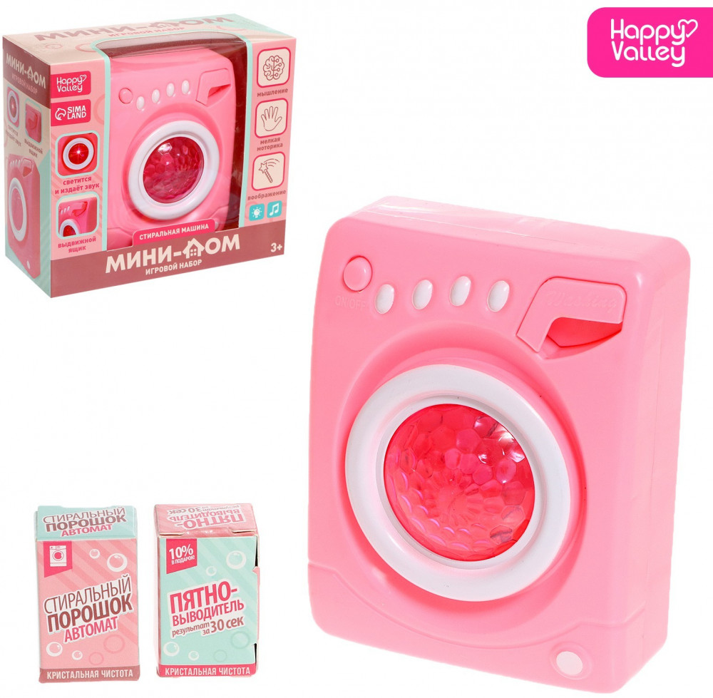 Happy Valley Машина стиральнаяВ данный момент этот товар отсутствует в продаже. Возможно, у нас найдется аналогичный или похожий товар здесь. Серия: Детская бытовая техника Каждая малышка мечтает быть как мама: хозяйственной, аккуратной и трудолюбивой. В этом ей пригодится стиральная машинка, которую можно использовать в ролевых играх. Игрушка работает почти как настоящий прибор: есть отсек для порошка, барабан крутится и издаёт звуки, а лампочка горит во время «стирки». |