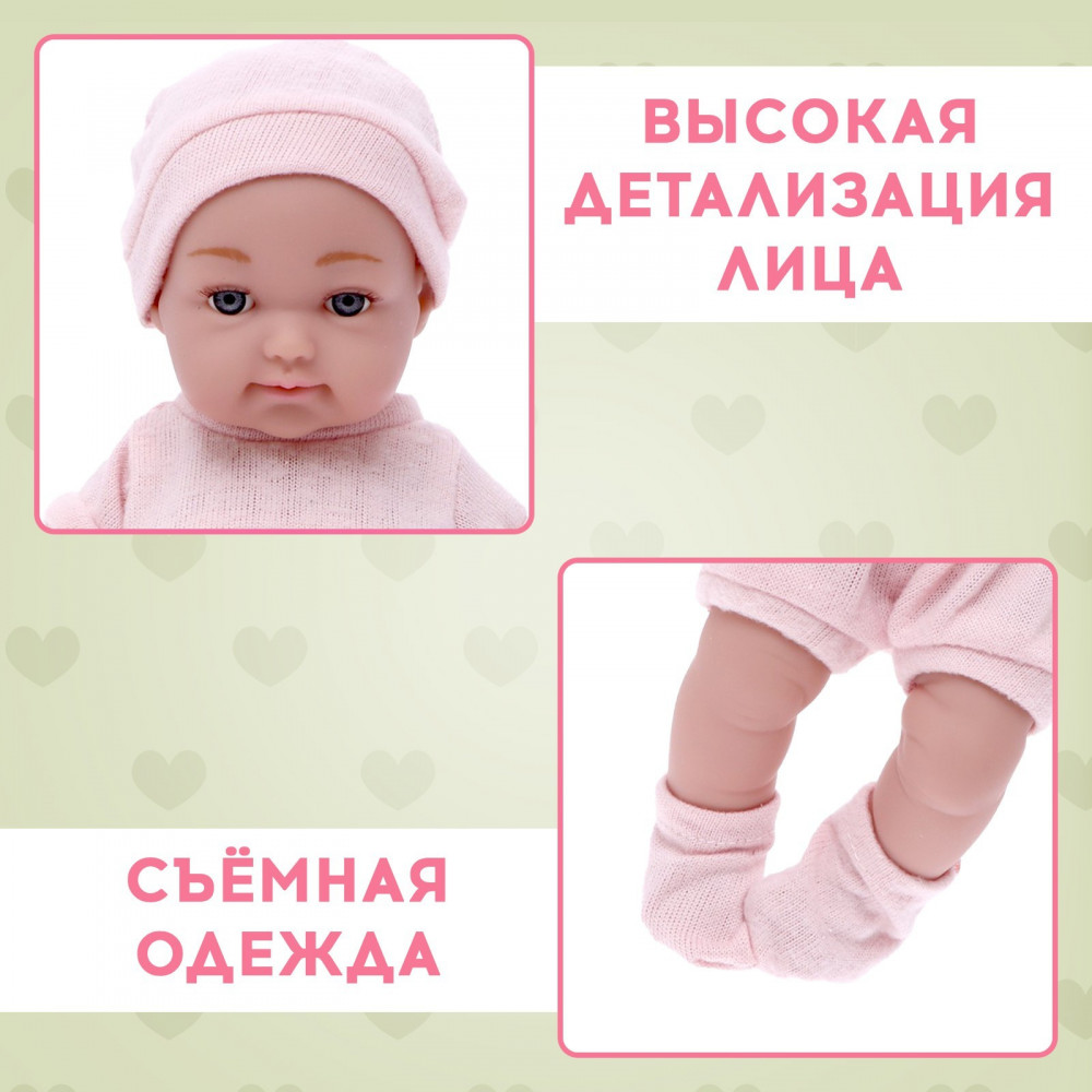 Серия: Пупс Пупс — одна из самых любимых детских игрушек. Благодаря ей малыши могут освоить социальные роли, научиться заботиться о ком-либо, проявить ответственность. Пупс Baby of dreams, Premium edition, выполнен из винила — высокоэкологичного материала, безопасного для ребёнка. Ручки и ножки подвижные, ножки разгибаются в положении лёжа. Одежда и шапочка снимаются. Можно купать. Не пьёт и не писает. Глазки не закрывает. |