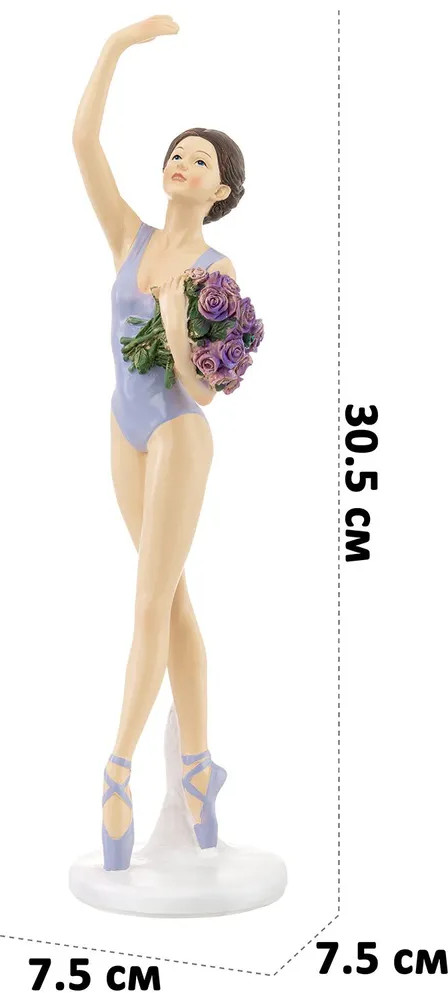 Изящная фигурка балерины с букетом цветов послужит украшением гостиной или спальни и добавит в ваш интерьер нотки индивидуальности и стиля. Превратите вашу дачу в уютное место с особой атмосферой благодаря этому сувениру! Вы можете разместить статуэтку на полке, столе или создать декоративную композицию вместе с другими украшениями. Фигурка станет чудесным подарком для ваших родных и близких на любой праздник. Подарите статуэтку своей коллеге или подруге. Пусть она будет символом красоты, изящества и домашнего уюта!