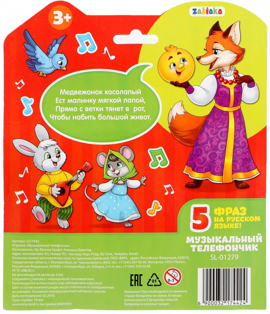 | Zabiaka Телефон музыкальный «Любимые сказки»