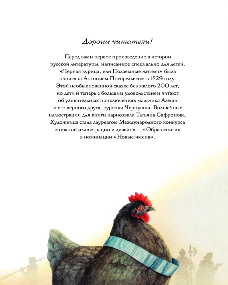 💳 Оплатить за товар можно при получении 🇰🇿 Есть бесплатная доставка по Казахстану от 1 дня 🎁 Копите бонусы с каждой покупки Серия: Классики детской книги «Чёрная курица, или Подземные жители» — необыкновенная, чарующая история, которую Антоний Погорельский (псевдоним Алексея Алексеевича Перовского) написал для своего горячо любимого племянника Алёши — будущего известного писателя Алексея Толстого. Это первое произведение в истории русской литературы, написанное специально для детей. Мальчик Алёша учится в Петербургском пансионе. На каникулах его школьные друзья разъезжаются по домам, и он остаётся один. Тут-то с Алёшей и начинают происходить удивительные и невероятные вещи. |