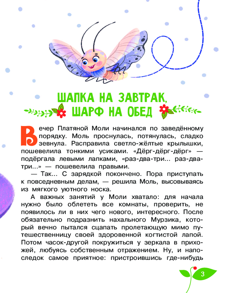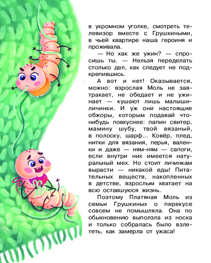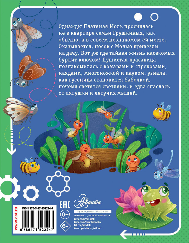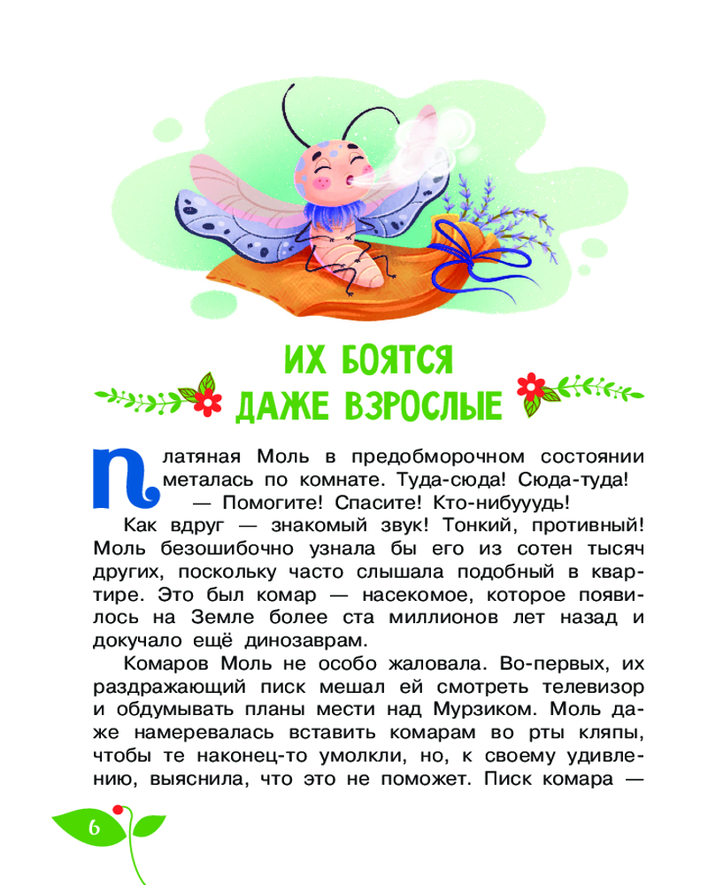 Серия: Научные сказки Однажды Платяная Моль проснулась не в квартире семьи Грушкиных, как обычно, а в совсем незнакомом ей месте. Оказывается, носок с Молью привезли на дачу. Вот уж где тайная жизнь насекомых бурлит ключом! Пушистая красавица познакомилась с комарами и стрекозами, наядами, многоножкой и пауком, узнала, как гусеница становится бабочкой, почему светятся светляки и едва спаслась от лягушки и летучих мышей. Много интересных фактов о насекомых встретится в увлекательной сказке Виктории Царинной «Тайная жизнь насекомых». Иллюстрации Кристины Митиной. Для младшего школьного возраста. |