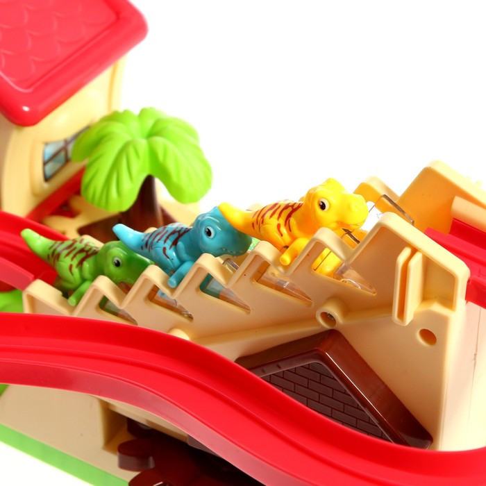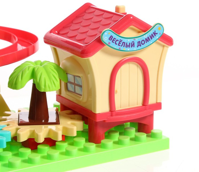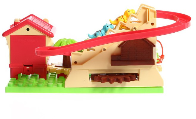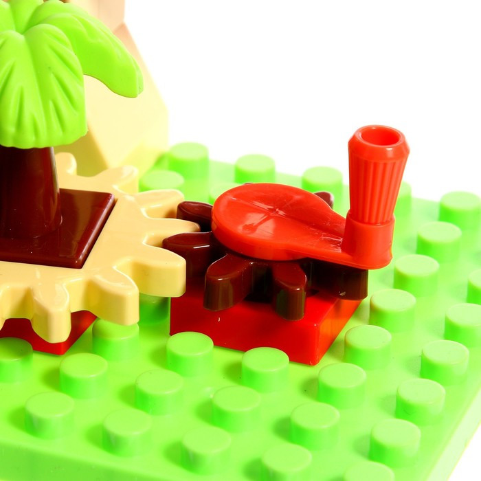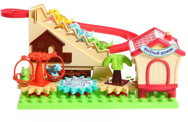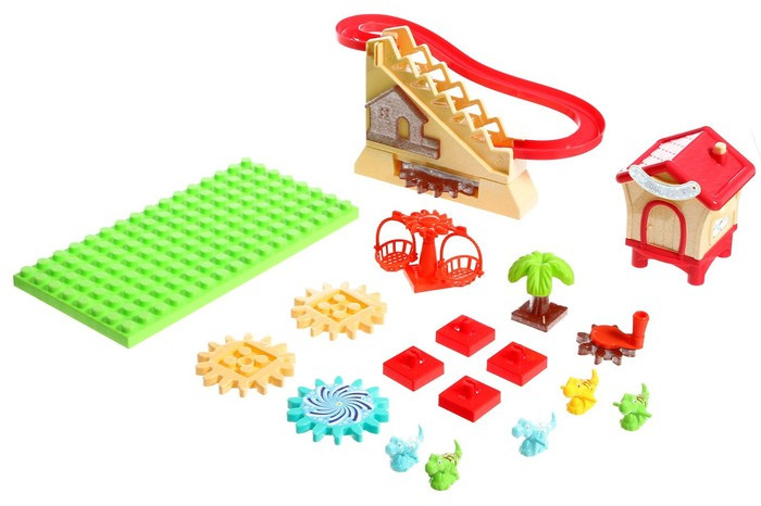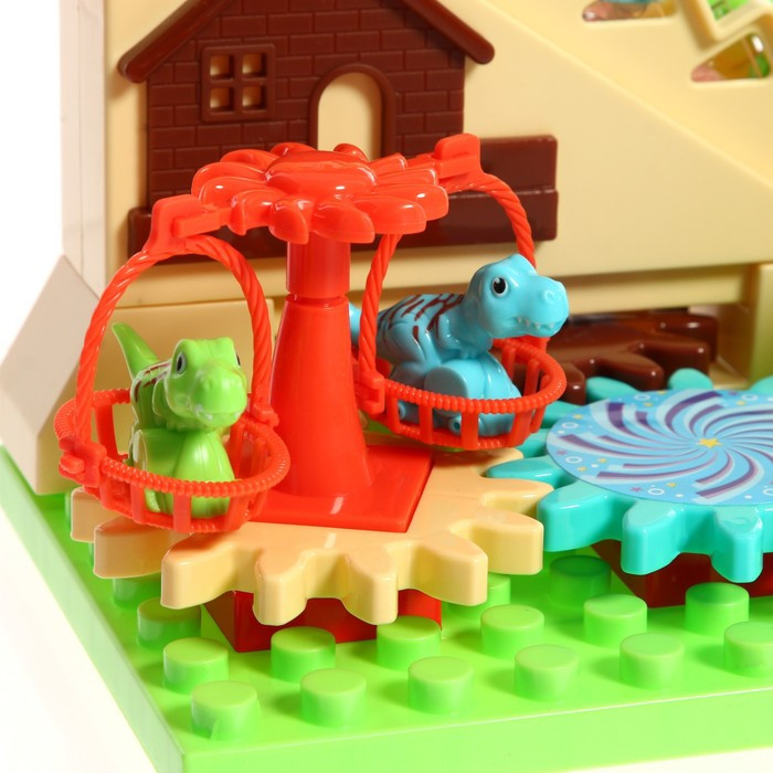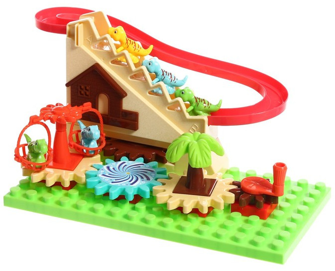 Развивающий конструктор с шестерёнками — увлекательный аттракцион для милых динозавров. Небольшой парк развлечений двигается за счёт вращения шестерёнок. |