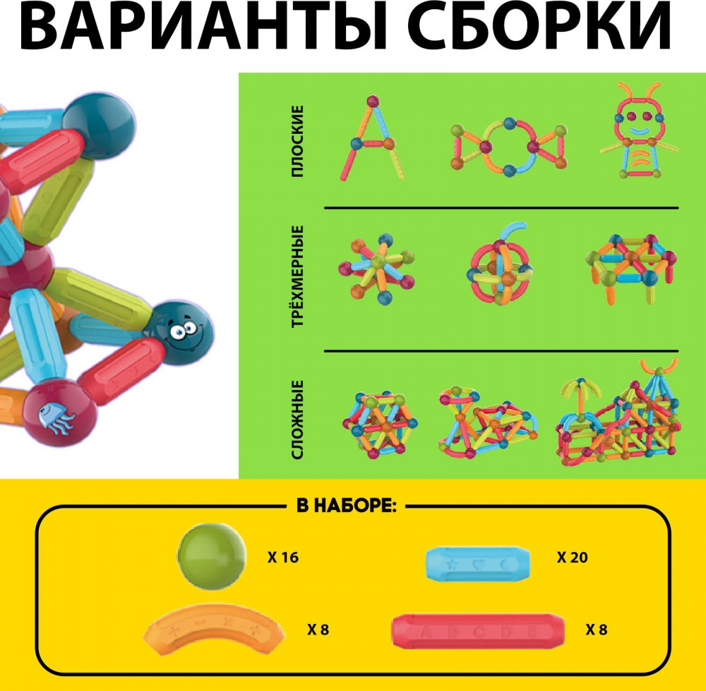 💳 Оплатить за товар можно при получении 🇰🇿 Есть бесплатная доставка по Казахстану от 1 дня 🎁 Копите бонусы с каждой покупки Серия: Магникс Магнитный конструктор — это набор, детали которого соединяются как по волшебству. Под действием магнитного поля элементы притягиваются друг к другу, открывая неограниченный простор для экспериментов. С яркими деталями в виде геометрических фигур ребёнок будет создавать уникальные трассы для спуска шариков. Придумывая каждый раз новые сооружения, малыш окунётся в мир креативного конструирования. Конструирование способствует многогранному развитию детей. Не только увлекательно, но и полезно! |