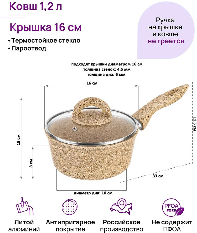 Elan Gallery Ковш с крышкой «Медовый гранит»