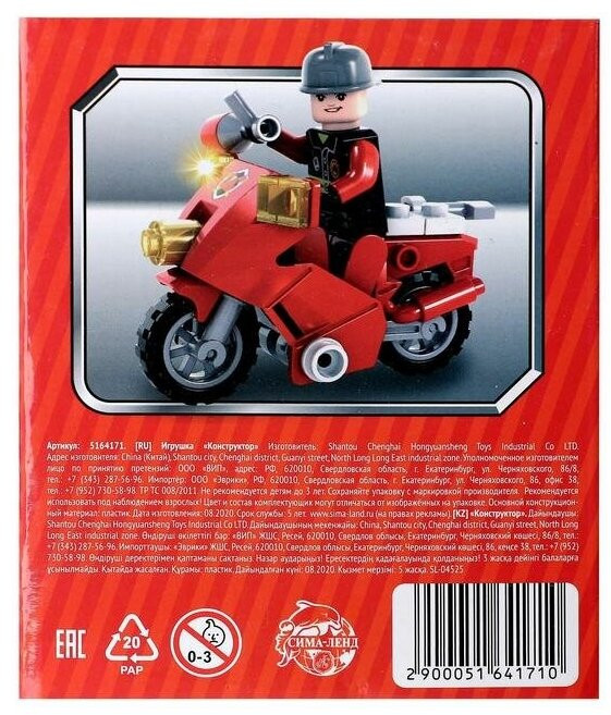 Unicon Конструктор «Пожарный байк»В данный момент этот товар отсутствует в продаже. Возможно, у нас найдется аналогичный или похожий товар здесь. Серия: Пожарные Детали конструктора Unicon изготовлены из высококачественной пластмассы. |