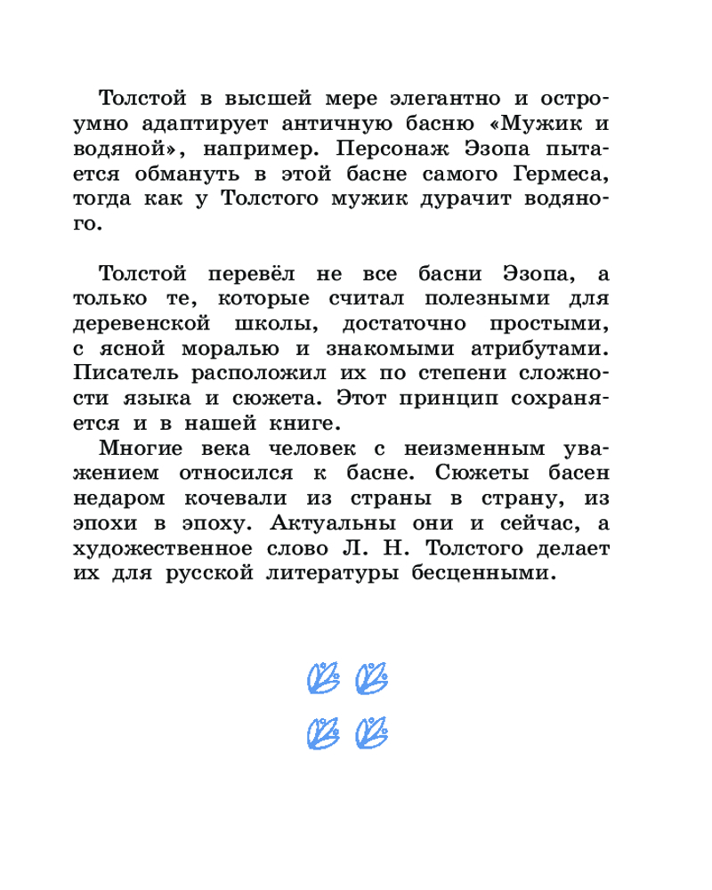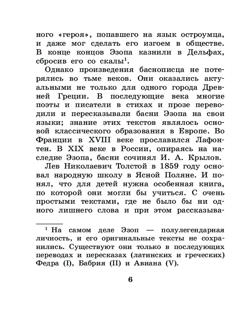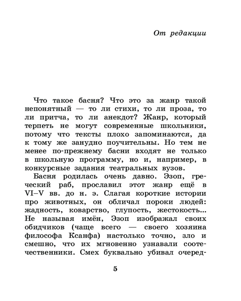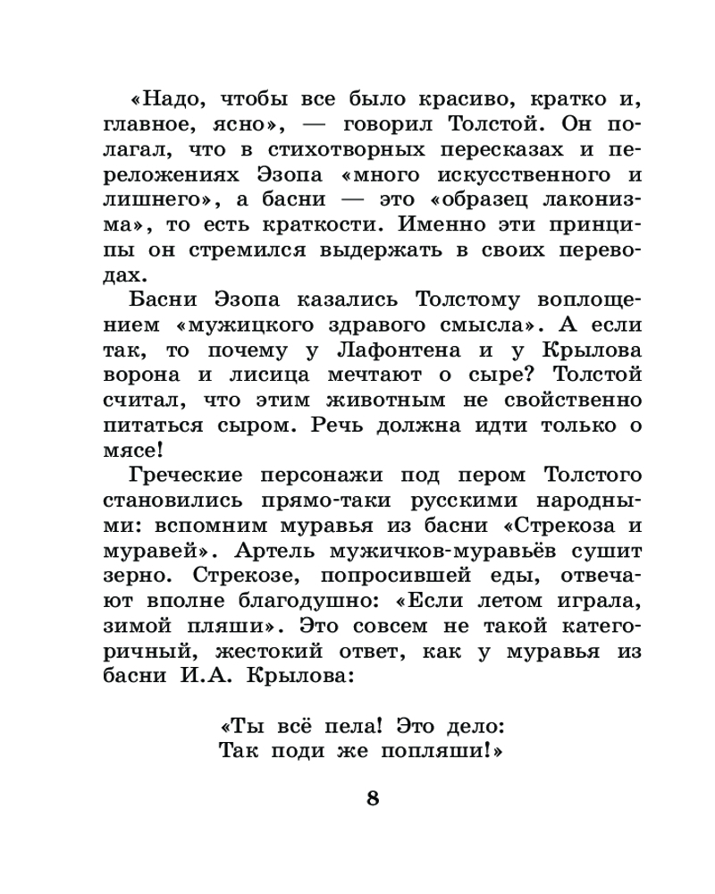 В данный момент этот товар отсутствует в продаже. Возможно, у нас найдется аналогичный или похожий товар здесь. Серия: Лучшая детская книга В книгу вошли басни Эзопа — легендарного древнегреческого раба — в переводах Льва Николаевича Толстого. Эзоп прославился тем, что слагал короткие истории про животных, в которых обличал человеческие пороки. Причём делал это так мастерски, что в народе с лёгкостью узнавали прототип героя.