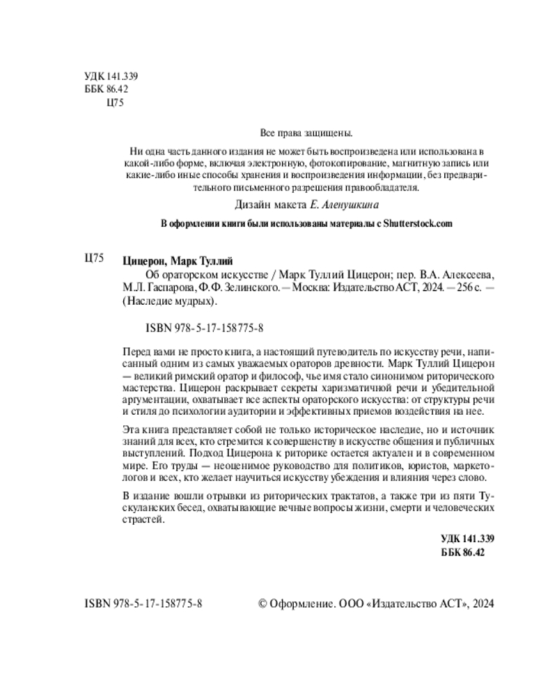Серия: Наследие мудрых Перед вами не просто книга, а настоящий путеводитель по искусству речи, написанный одним из самых уважаемых ораторов древности. Марк Туллий Цицерон — великий римский оратор и философ, чье имя стало синонимом риторического мастерства. Цицерон раскрывает секреты харизматичной речи и убедительной аргументации, охватывает все аспекты ораторского искусства: от структуры речи и стиля до психологии аудитории и эффективных приемов воздействия на нее. |