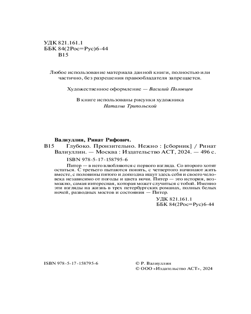 💳 Оплатить за товар можно при получении 🇰🇿 Есть бесплатная доставка по Казахстану от 1 дня 🎁 Копите бонусы с каждой покупки Серия: Проза для гурманов. Избранное Питер — в него влюбляются с первого взгляда. Со второго хотят остаться. С третьего пытаются понять, с четвертого начинают жить вместе, с половины пятого и допоздна ищут здесь себя и своего человека независимо от погоды и цвета ночи. Питер — это история, возможно самая интересная, которая может случиться с тобой. Именно эти взгляды на жизнь в трех Петербургских романах, полных белых ночей, разводных мостов и состояния — Питер. |
