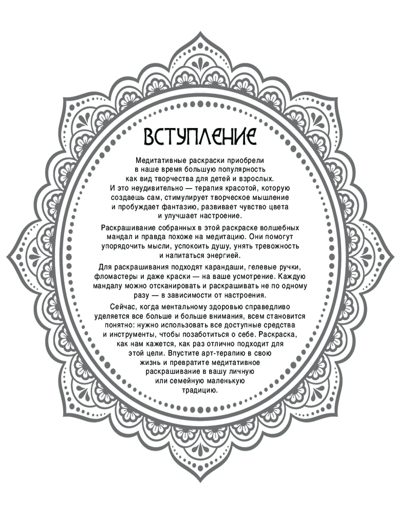 Волшебные мандалы. Рисунки для медитацийВ данный момент этот товар отсутствует в продаже. Возможно, у нас найдется аналогичный или похожий товар здесь. Серия: Антистресс В этой раскраске вы найдете мандалы с самыми разными мотивами и узорами. Раскрашивая их, вы очистите разум от хаотичных мыслей, сможете унять тревожность и на какое-то время отвлечетесь от жизненной суеты. Немаловажный бонус: с помощью этих мандал вы дадите проявиться своему творческому началу и научитесь ценить волшебство момента. |
