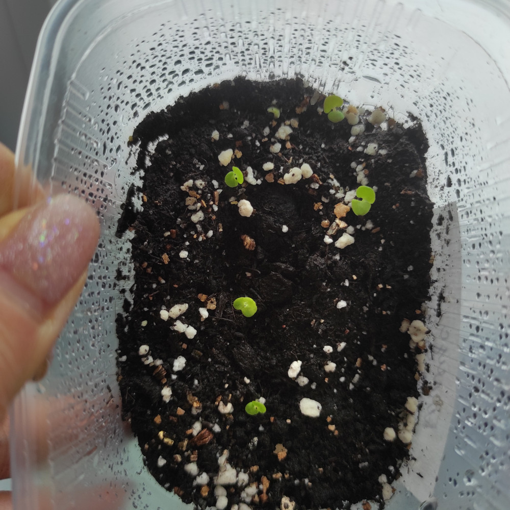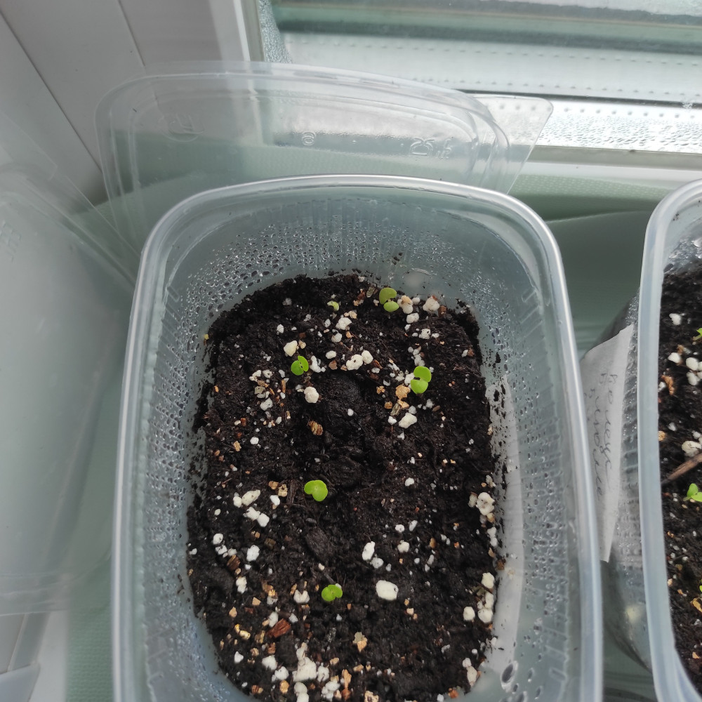 В упаковке было 5 семян и все проросли. сажала поверхностно, закрывала крышкой от контейнера, без подсветки на окне. Посадила 28 февраля. Фото сделала 9 марта