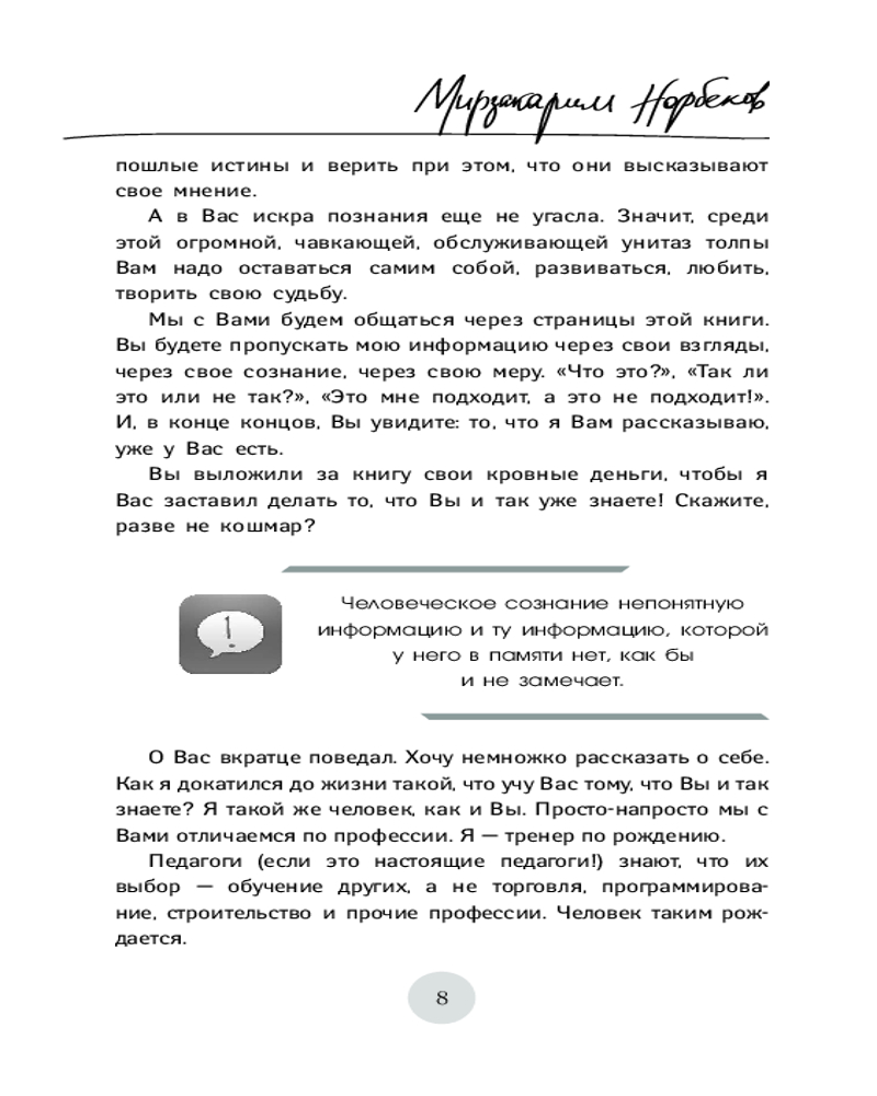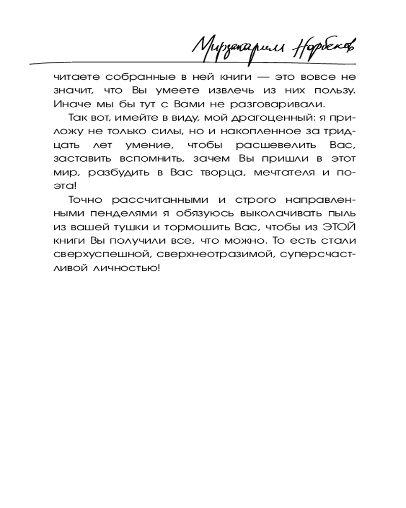 Серия: Практический тренинг За гениальную способность делать людей лидерами Мирзакарим Норбеков получил блестящее звание «Мастер науки побеждать». Трое из десяти миллиардеров России — ученики мастера Норбекова.
