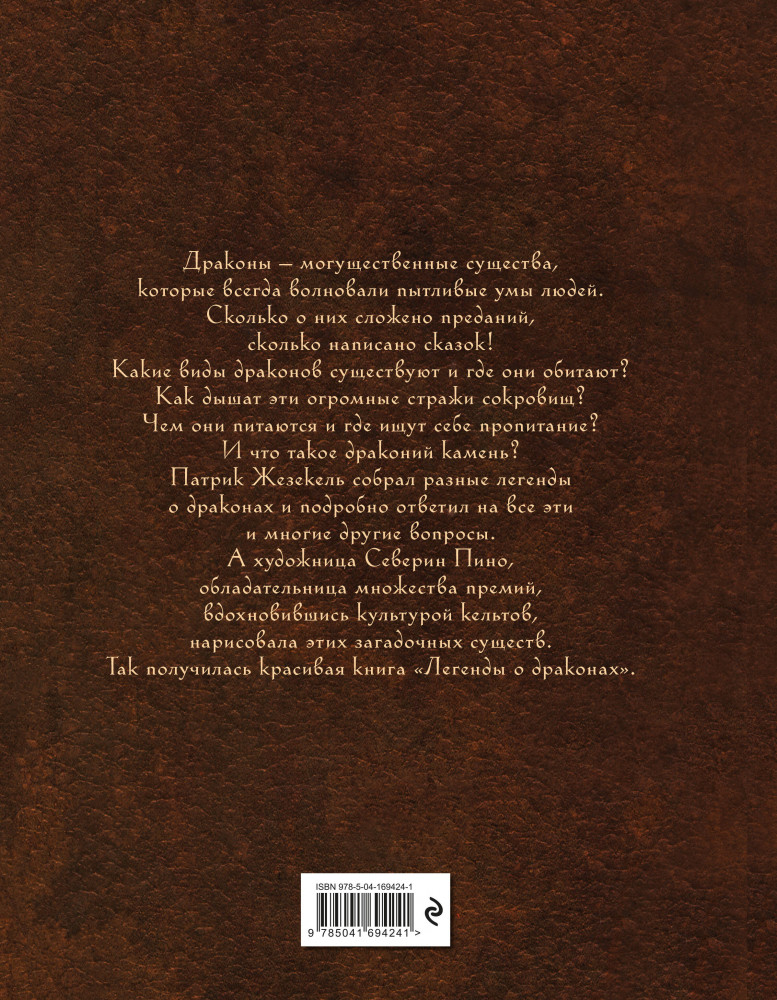 💳 Оплатить за товар можно при получении 🇰🇿 Есть бесплатная доставка по Казахстану от 1 дня 🎁 Копите бонусы с каждой покупки Серия: На просторах мифов и легенд Эта захватывающая книга погрузит вас в мир мифических существ и потрясающей магии. Здесь вы встретите множество волнующих историй и откроете тайны загадочных, величественных драконов, обитающих в отдалённых горных пещерах и дремлющих в глубинах потаённых озёр. Эти могущественные существа всегда волновали пытливые умы людей. Сколько о них сложено преданий, сколько написано сказок! Как дышат эти огромные стражи сокровищ? Какие они бывают и где ищут себе пропитание? |