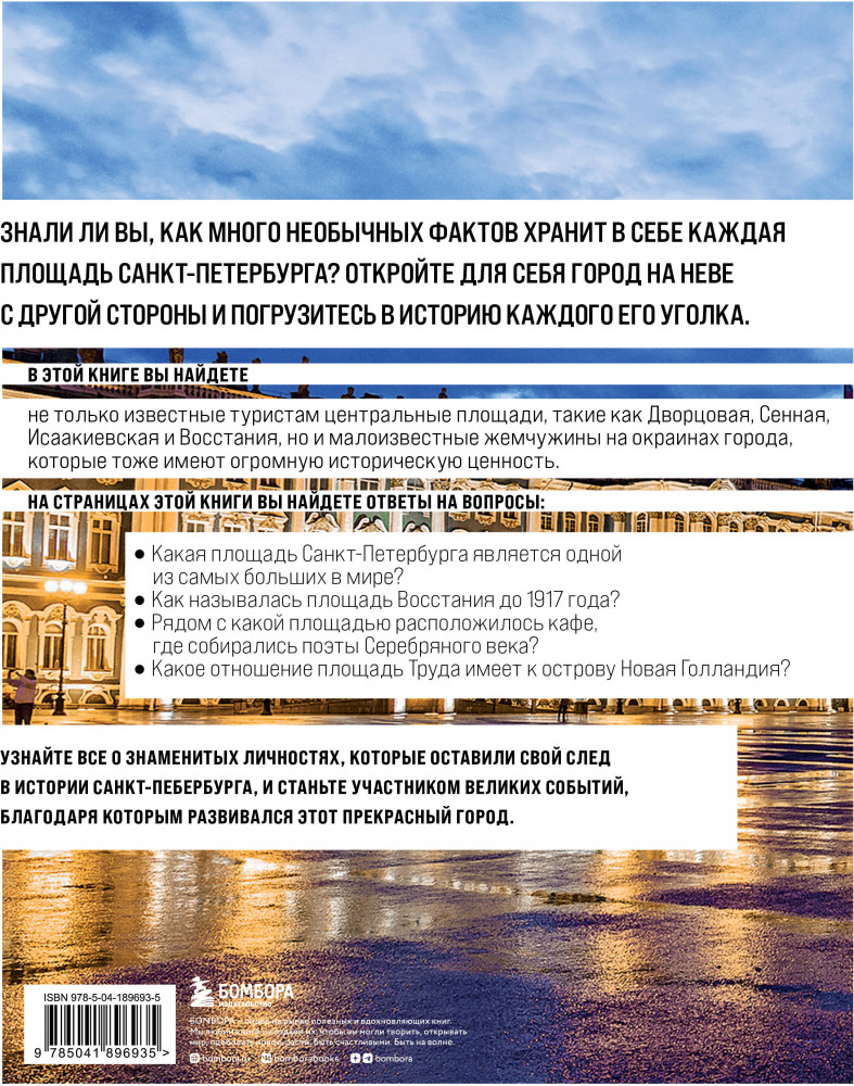 💳 Оплатить за товар можно при получении 🇰🇿 Есть бесплатная доставка по Казахстану от 1 дня 🎁 Копите бонусы с каждой покупки Серия: Петербург. Архитектура и история Познакомьтесь с Северной столицей благодаря интересным историям ее площадей! Эта увлекательная, богато иллюстрированная книга станет вашим проводником в секреты таких известных мест, как Адмиралтейская, Дворцовая, Исаакиевская площадь, а также расскажет о не менее значимых точках на окраинах города. На какой площади можно ощутить дух Византии? Где в Петербурге можно было увидеть прогуливающихся слонов? Какие площади ассоциируется с «Петербургом Достоевского»? Станьте экспертом в этой области и поражайте знаниями своих друзей, прогуливаясь по Санкт-Петербургу! |